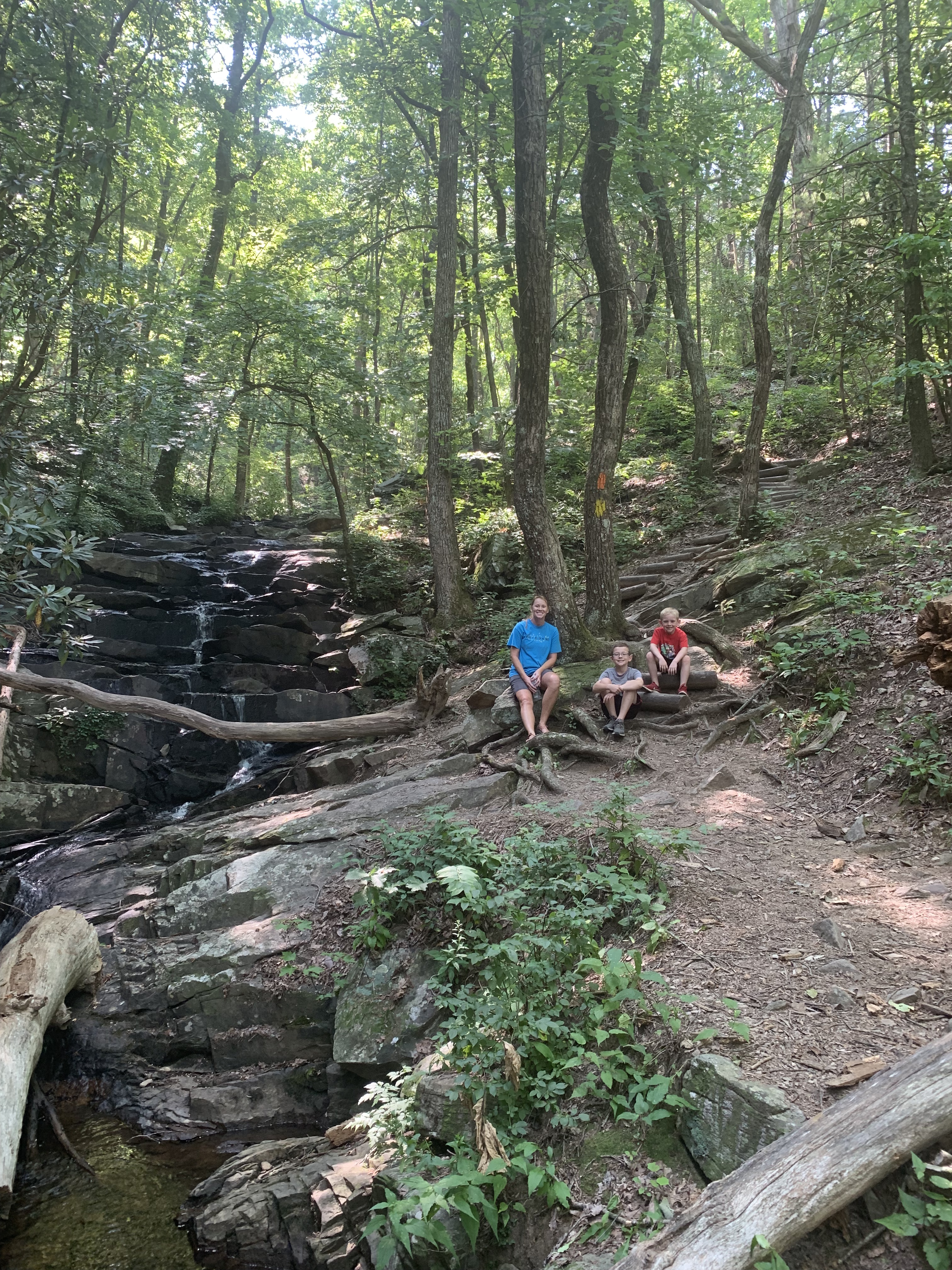 You campers out there know what’s coming. But for the rest of you let me explain. When you drain your tanks there’s still some “stuff” in the bottom on the tanks. Well, when you close the valves it stays in the tanks, the rest drains out the pipe and them you cap it. When you leave the valves open while you’re driving the “stuff” sloshes around in the tanks and out into the drain pipe. I know this but I was so frustrated when we left our site at Fort Mountain, I wasn’t thinking about any of that. BIG TIME ROOKIE MISTAKE. So………. when I took the cap off the drain pipe to hook up my sewer hose all that “stuff” that had sloshed around into the drain pipe came pouring out of the pipe all over my hands and feet. Trevor was gagging and laughing all the while wishing he had been recording this fiasco. The boys thought it was funny that mommy was covered in poop. Mommy didn’t find it funny at all. It was one of the most disgusting moments of my life and I was in no mood for it.