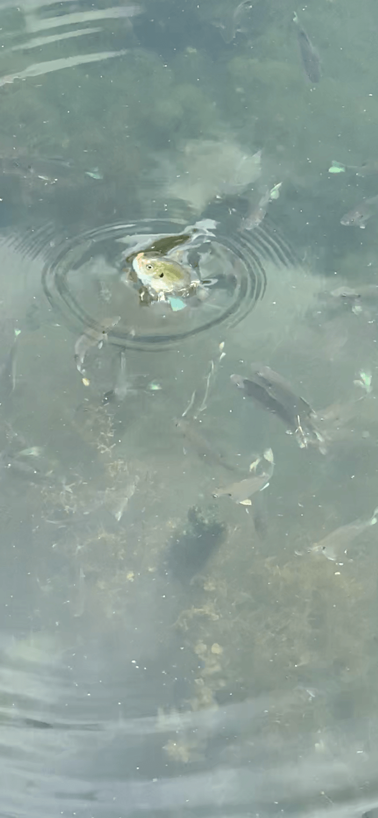 They immediately set out looking for a stick and some old fishing line along the shore line and, to their delight, they found some. Mason was in charge of making the pole. Tuck didn’t have the patience to wait so he decided to use his hands. Mason tied a little stick to the end of the line to hold his loaf bread bait. After many failed attempts Mason gave up the pole and resorted to Tuck’s grab method.
