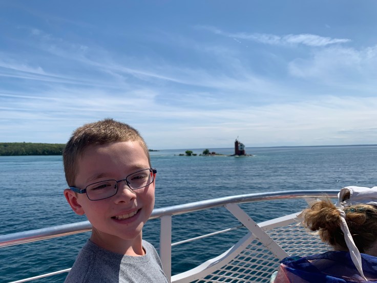 Mason was pretty excited about the next day. His friend, Gianni, moved to Michigan at the end of the school year. Fortunately, we were able to visit him and his family along our route. They very graciously hosted our family. Gianni LOVES cherries but the grocery store was all out of them so we grabbed some sugar laden frosted cookies instead. Not the same but it’s the thought that counts, right? If I had known we couldn’t get cherries, we would have bought him some of the Traverse County Cherry fudge Mason tried. He said it was delicious.