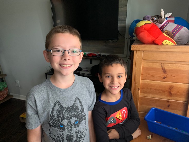 When we pulled into their driveway, Gianni came out to greet us and he and Mason gave each other a big old hug. Too sweet! Gianni had gotten a Minecraft Lego set for them to put together so upstairs they went.