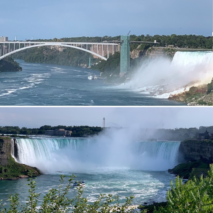 I love the US but I’ve got to say Canada has us beat when it comes to Niagara Falls. The US side is kind of like looking at the falls from the top and side. The Canadian side you are looking head on to the US side and the horseshoe part and they have all these beautiful flowers. In the pic below the US side is on top and the Canadian side in on bottom.