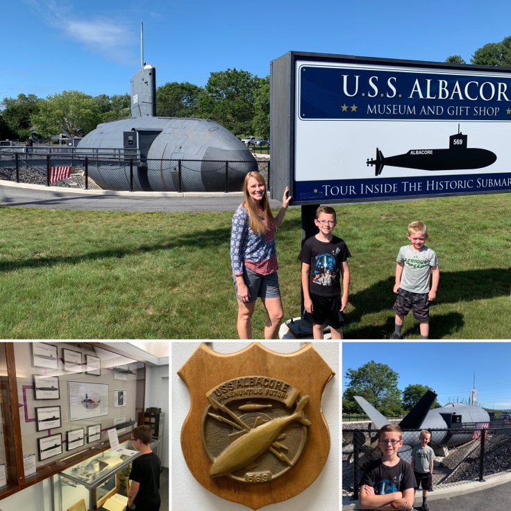 We toured inside the historic USS Albacore submarine. The submarine has an interesting history and the story of how they got the sub where it sits today is as well. It was the first torpedo shaped sub like we have now but it was still diesel electric unlike the nuclear subs of today and it was used to test new changes. The tour is self guided but it has audio buttons in each area you can press when you’re ready. The audio messages talk about the function of each station along with antidotes from former crewmen.