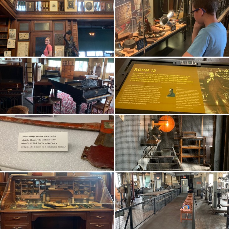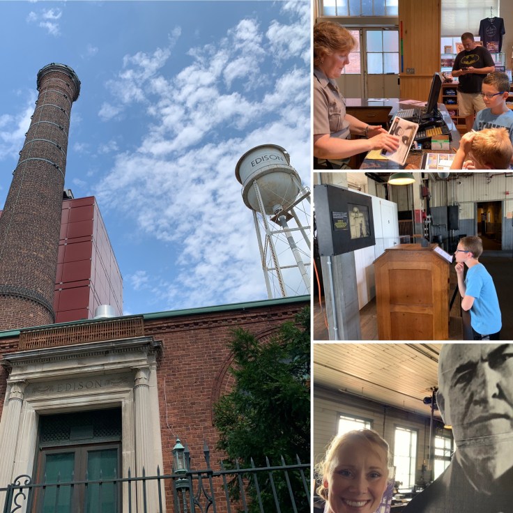 So Grumpy pants and the rest of his gang finally make it to our first Jersey stop, The Thomas Edison Historical Park, which consists of Edison’s Laboratory at West Orange and his Glenmont home. We just toured the Laboratory. The kids had had enough houses. Edison is super fascinating! He believed in hard work. One of Trevor’s favorite quotes attributed to Edison is “opportunity is missed by most people because it is dressed in overalls and looks like work.” We try to stress to the boys about working hard and not expecting things to be given to you or just looking for the easy fix. Most people know Edison because of the light bulb but he created so MUCH MORE than that. Edison worked on inventions right up until his death at age 84. Good grief! Just thinking about it all makes me tired. I can’t imagine that kind of innovation.