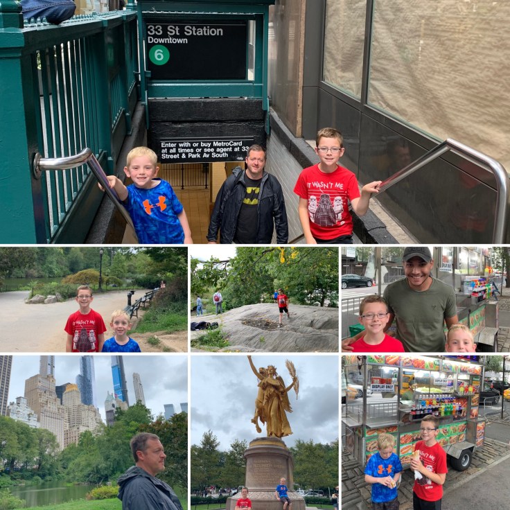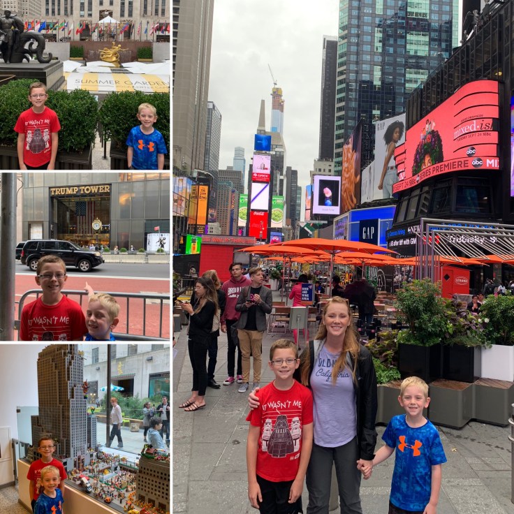 So we walked to Times Square and then over to Rockerfeller Center. They spotted the Lego store so we had to go in. They could have stayed in there all day. But we had to keep moving. Then over to 5th Ave to see Trump Tower, and Central Park. The boys got to eat a hot dog from a New York food cart.