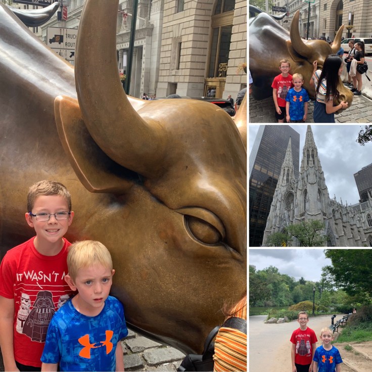 New York, New York. I enjoy the city. I like the lights, the different architectural building designs, people watching, all the events and sights, etc. I love it! Trevor hates it and I mean hates it. He’s usually a chipper fun guy. From the moment we took the wrong route he was in a foul mood. Short with me and the kids, all around grumpy. His I-hate-the-city attitude was starting to rub off on the kids. Mason was fine the first day but by the second day he was over the crowds and lights. I felt rushed and we didn’t even get to take the boys to a Broadway show. I was pretty sure the kids would like the Lion King and when they saw the sign they wanted to go but stick-in-the-mud didn’t want to stay any longer than we already had. He wasn’t like this last time we were in New York. I think since we’ve moved to the mountains he’s gotten worse about cities.