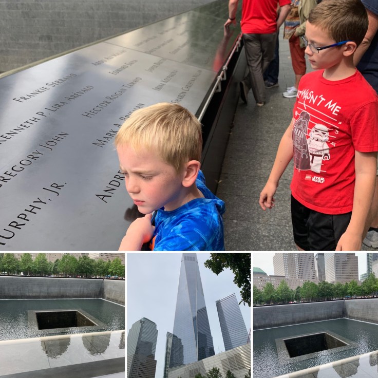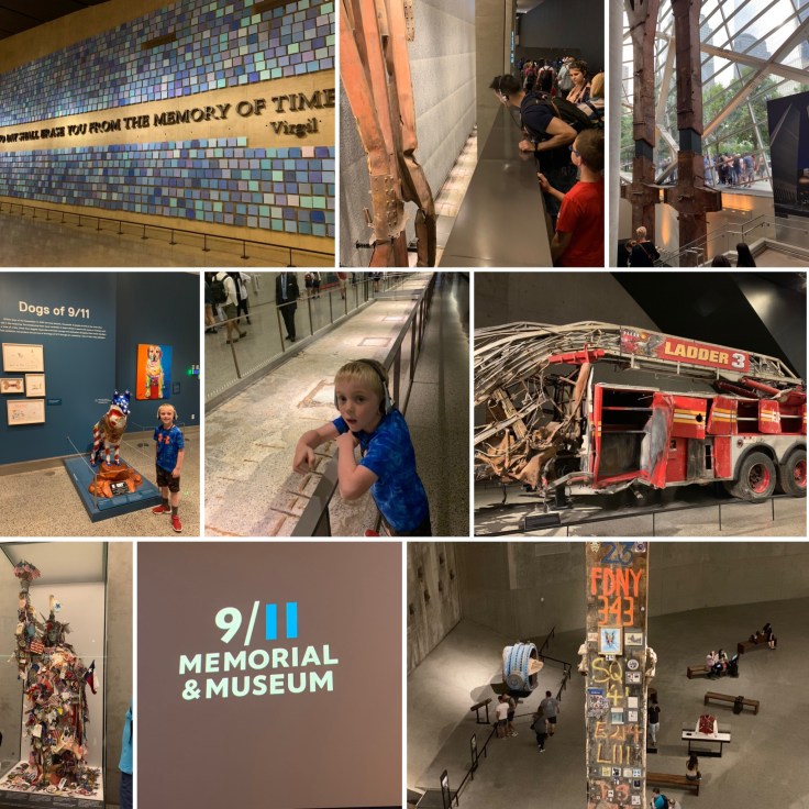 The museum offers regular admission, museum tours, and memorial tours. We wanted to go on the memorial tour but our stop at the Statue of Liberty was way longer than we expected and we missed the last tour of the day at 3pm. The museum was still open (until 8pm) so after viewing the memorial we got our tickets for the museum. That costs us $90 but we felt it was important to see. We watched the two 15 minute movies upstairs to start with as this gave the boys a little background on what 9/11 was all about. They weren’t born until years after the event and it wasn’t really anything that we had discussed with them until this trip.