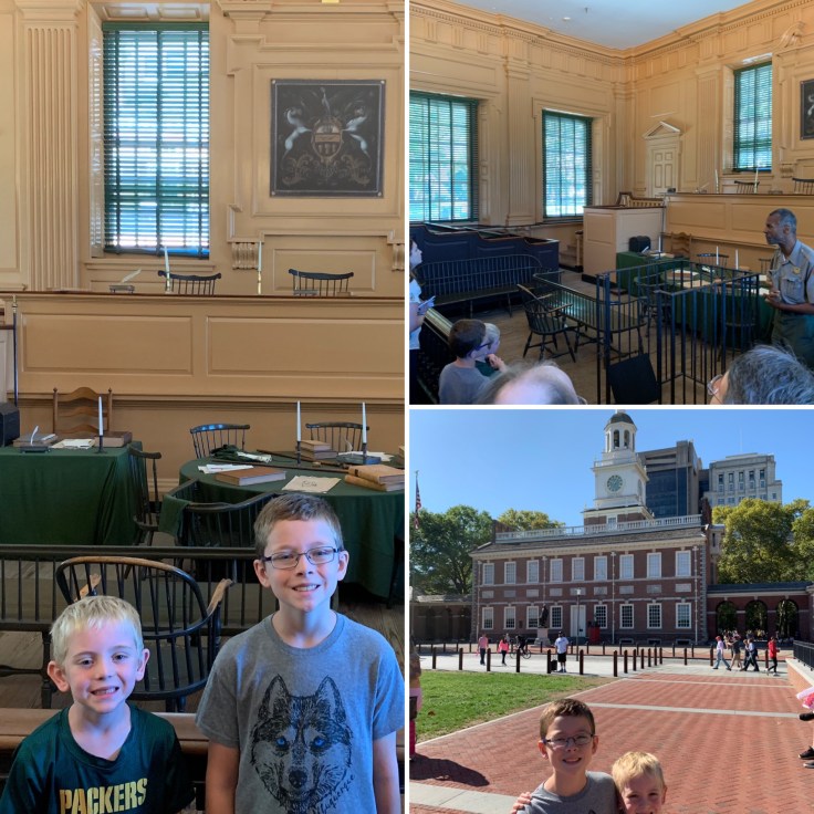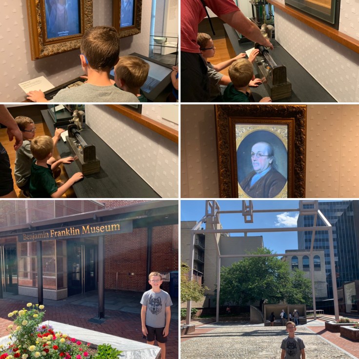 Then we walked over to the Benjamin Franklin Museum. This museum is not the normal history museum. It’s more of a hands on children’s museum. The boys both said it was their favorite stop. Then we mailed some postcards to the great grandparents from the Benjamin Franklin Post Office.