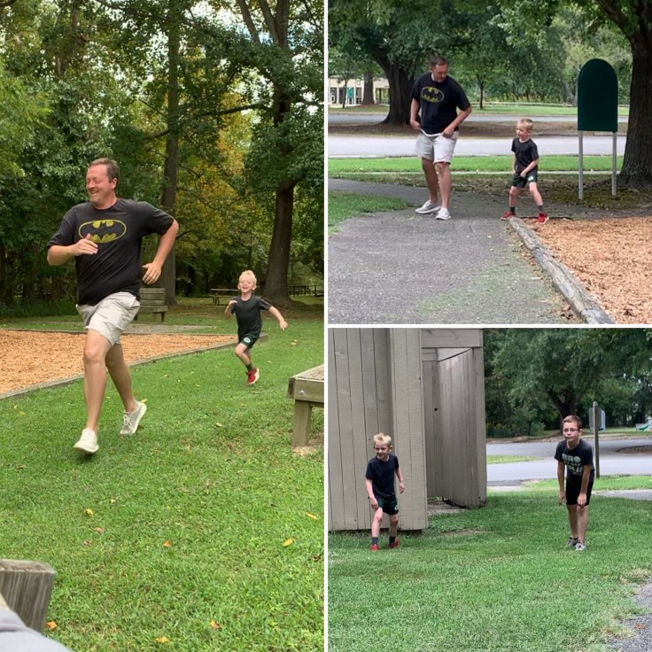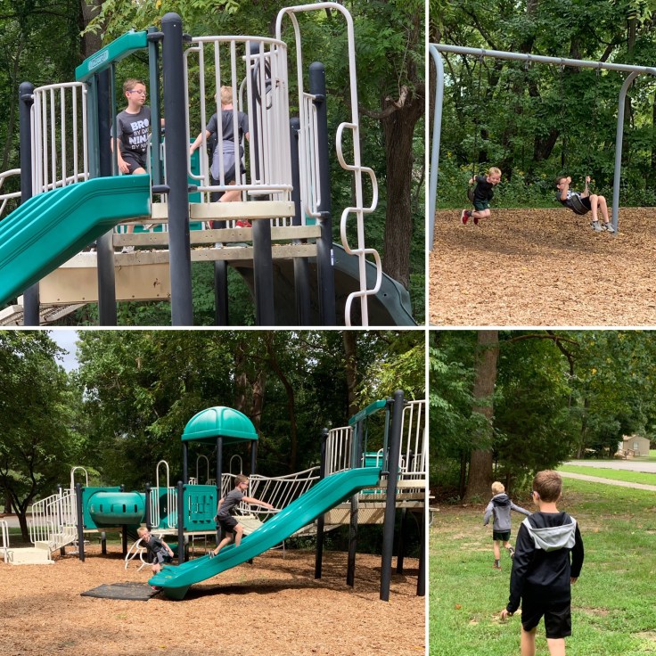 Anyway, we went back to the main part of the park and had lunch, played on the playground, and of course the boys had to race.