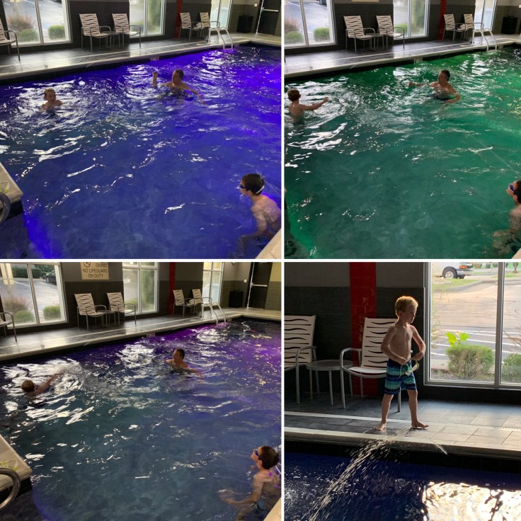 After dinner, it was time to swim. The boys loved this pool because it had color-changing lights and little jets going across the pool.
