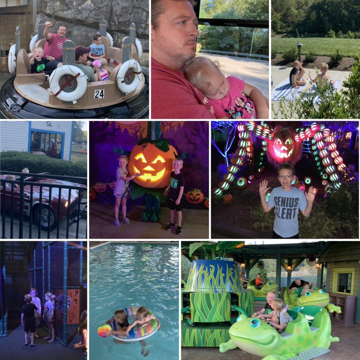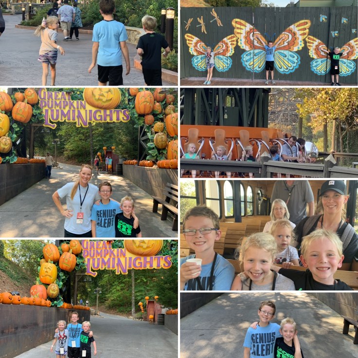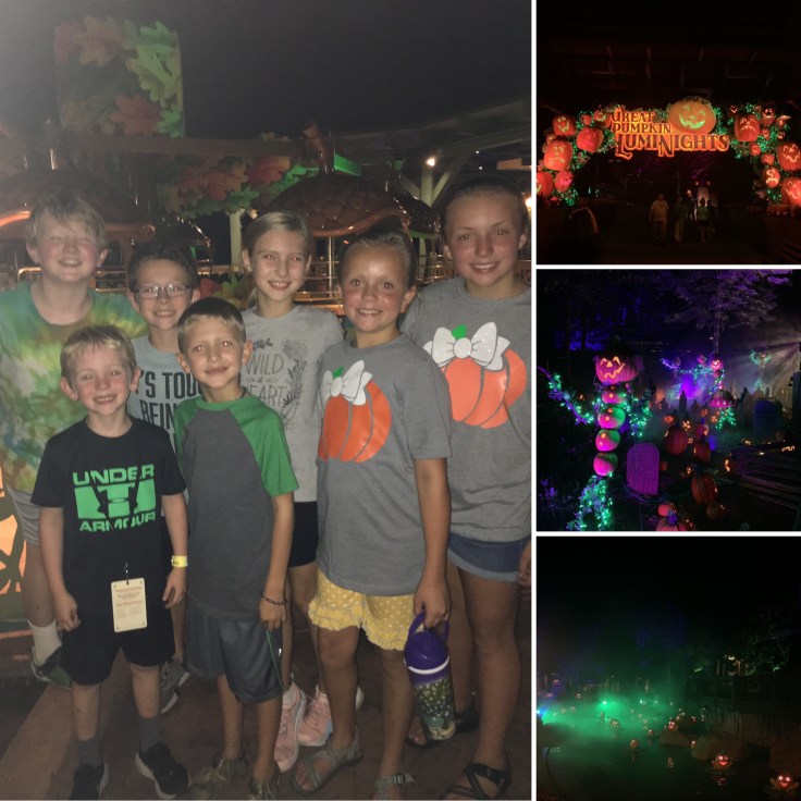 It was great. Once the sun started going down it wasn’t near as hot and the park wasn’t crowded at all. We hit it at a great time. We rode rides and viewed all the pumpkins Dollywood had displayed. The kids wanted s’mores and playground time but it was almost past my bedtime and definitely past theirs so off to bed we went.