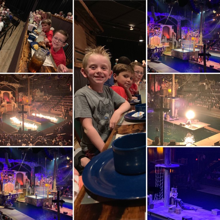 After lunch we headed over to the Dreammore (one of my favorite places to stay) and we hung out at the pool with the Lopezs before we all headed over to the Pirates Voyage Dinner Theater. The show was entertaining. I loved the seals. The boys enjoyed it and the food was okay. I thought it was pricey at around $200 for the four of us. But you get dinner and a show. I would do it once but I don’t know if I would come back and see it over and over. Then it was back to Dreammore for s’mores and playground time before bed.