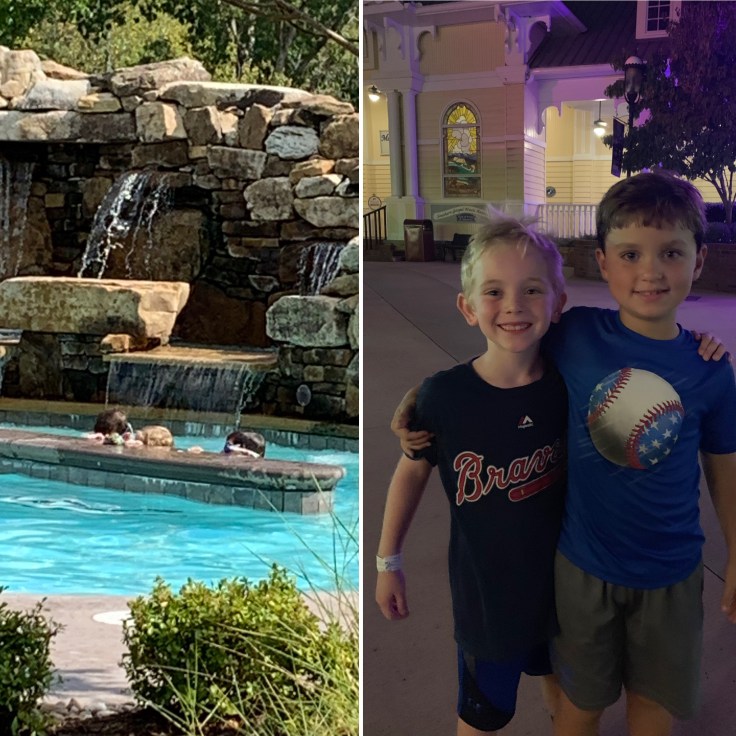 In the morning, we went to the playground but it was hot so that didn’t last long. We hit the pool and then after some quiet time in the room we headed over to the park again. The Depriest Family came to the park and we were able to spend time with them too. Mason and Joshua are good buddies from school. While we were at the park we also ran into several other kids from school.