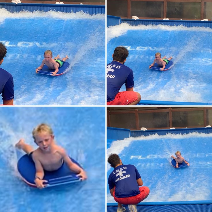 But before we got to Dollywood, we stayed at Wilderness at the Smokies. They were running a Groupon special so we got our room, access to the waterpark, and two all stay adventure passes. Pretty sweet deal. The first day the boys swam and rode water slides and Tuck gave it a go at body surfing.