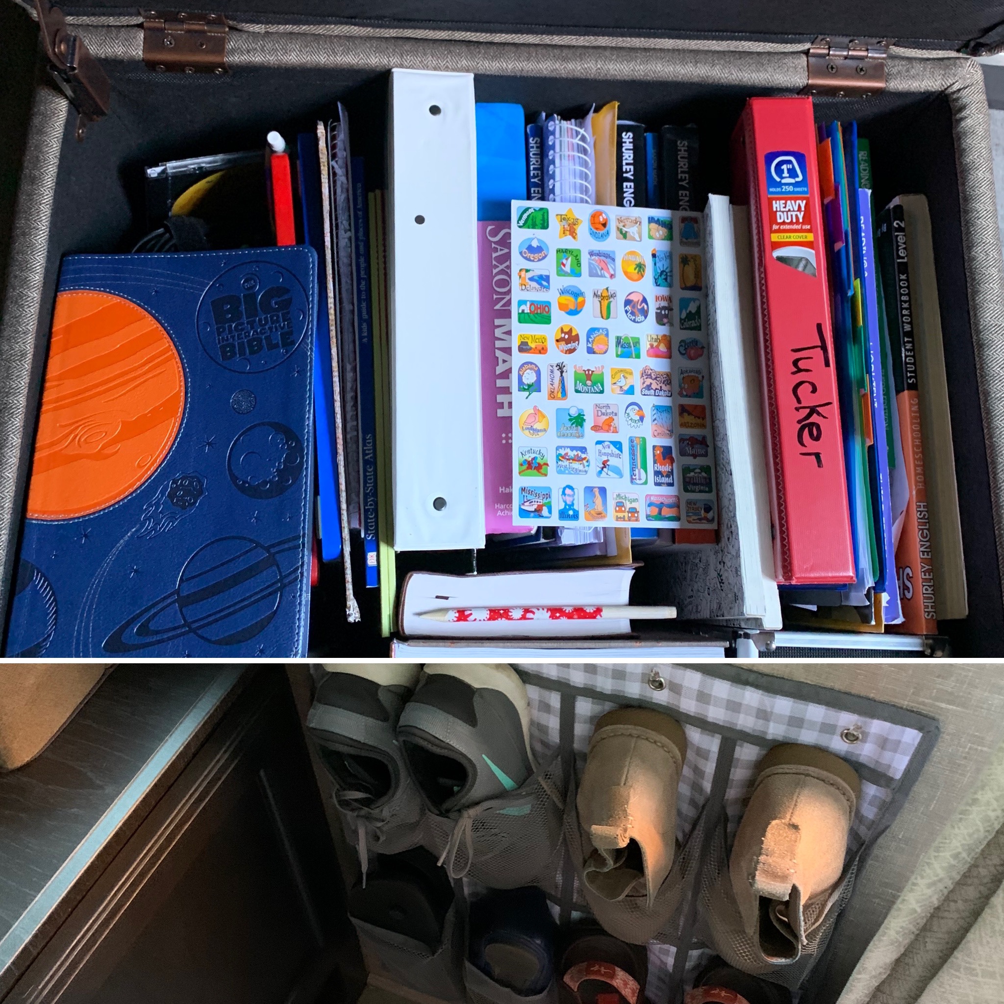 For those of you that haven’t seen the inside of our teeny-tiny trailer or for those of you that are trying to figure our how we fit our family of four in a 25 foot travel trailer, you’re in luck. I took a couple pictures.
