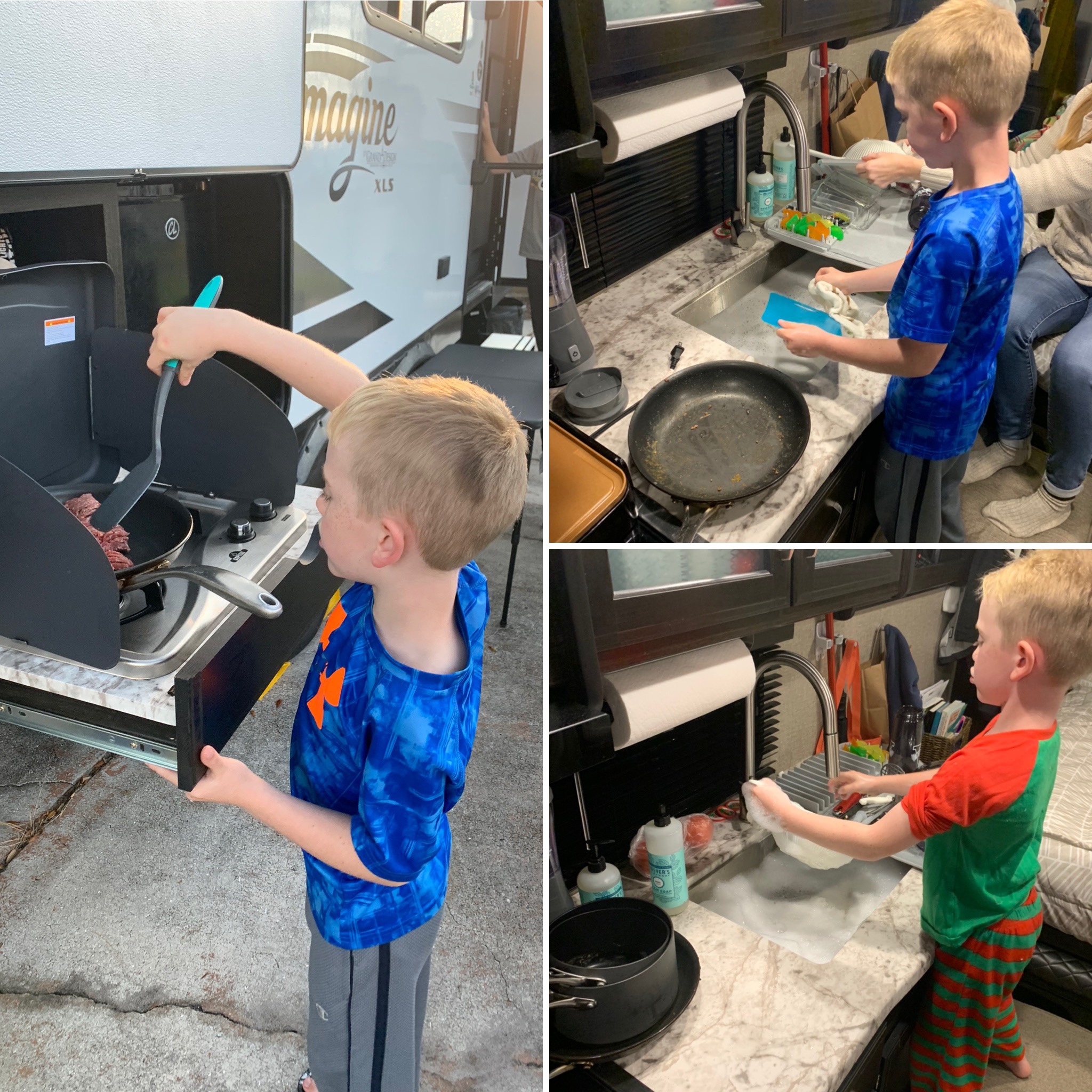 This little guy cooks and cleans. He even asks to do the dishes. Back off ladies, he’s only seven.