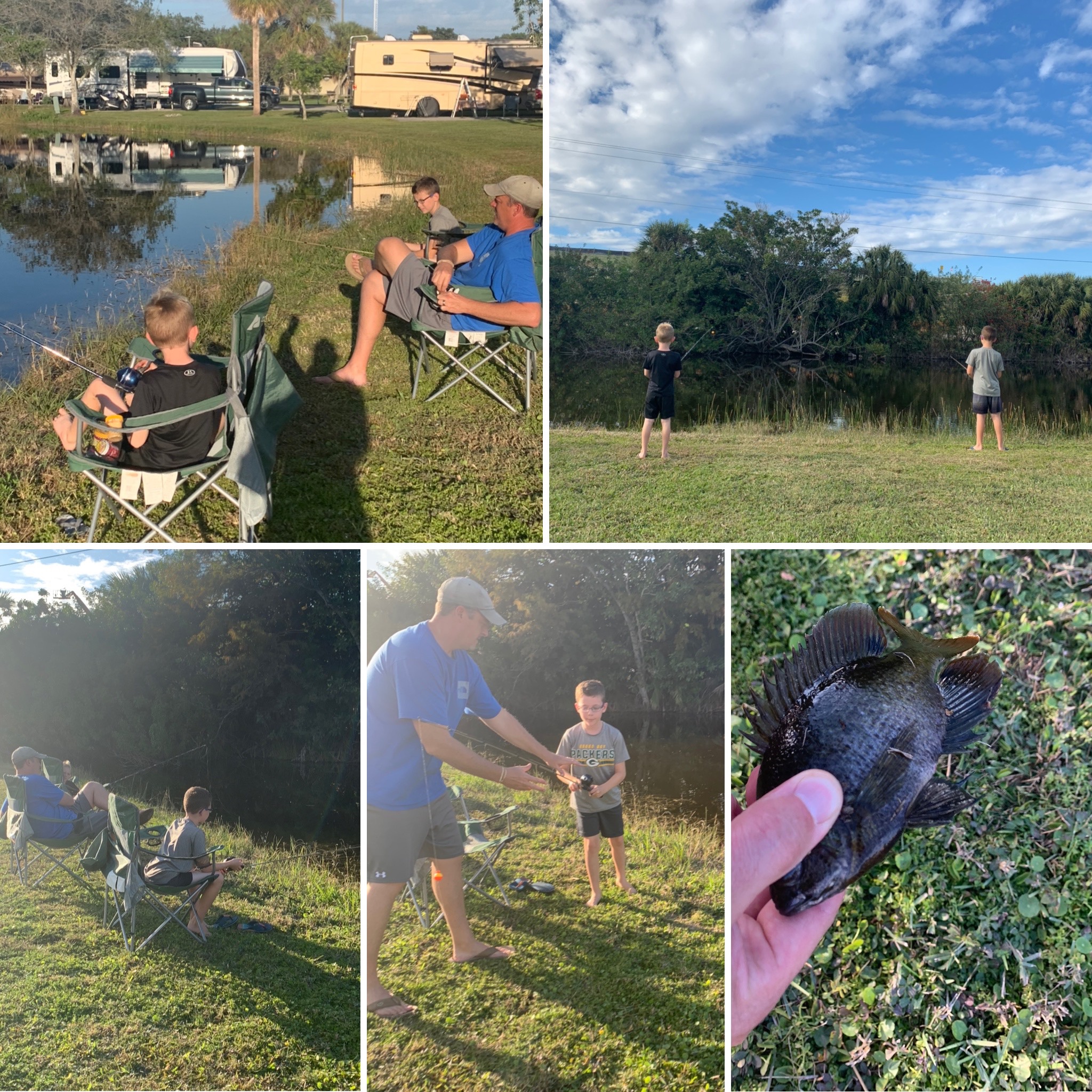 More importantly, the boys struck out on an alligator hunt. Sure enough, there was an alligator in the pond right behind our camper that Tuck found, another one Mason found on the other side of the pond, and Trev spotted one in the creek on the other side of the park and that’s just the ones we saw.