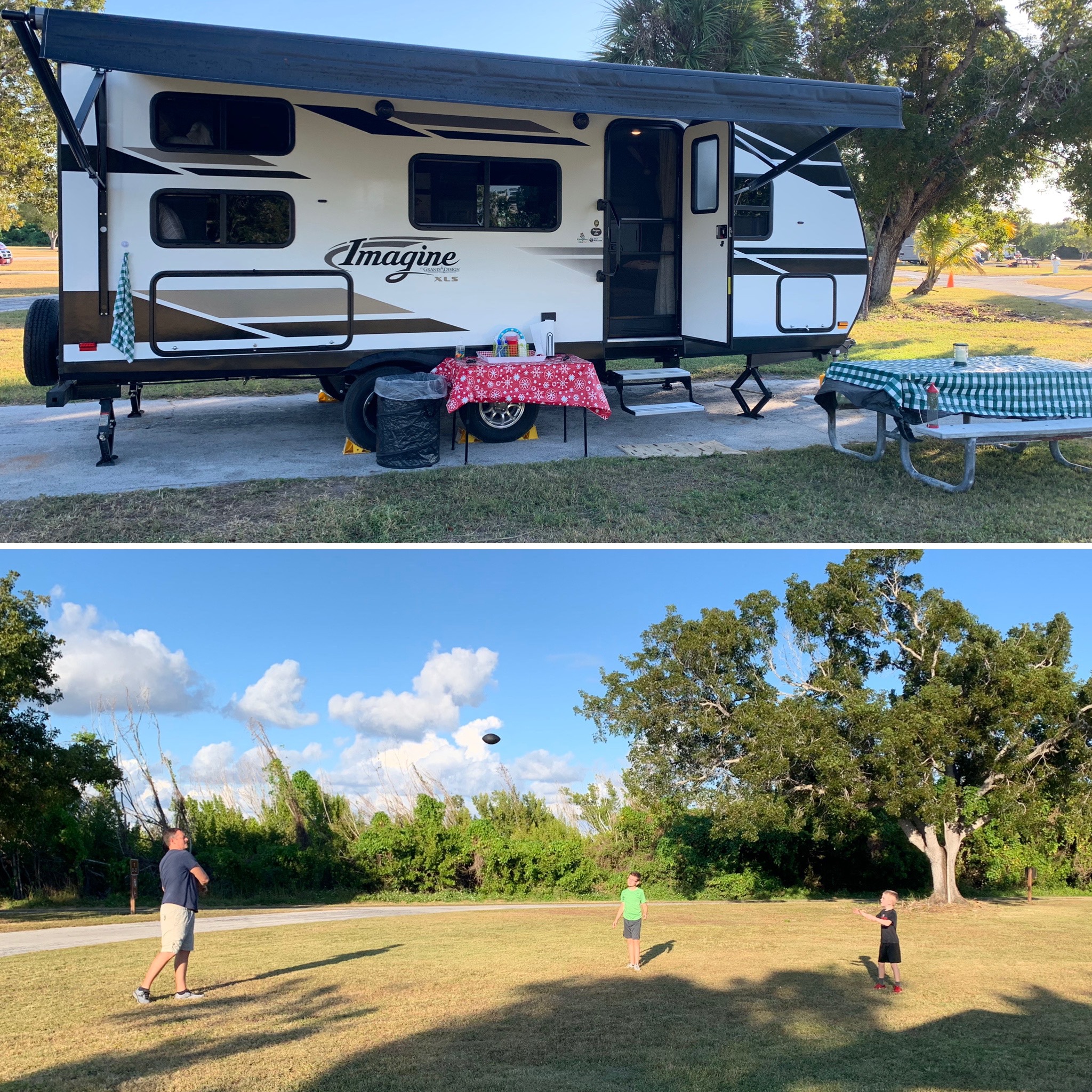 The weather is great! Our campsite was awesome. It was shaded on the door side and it was on the end so there was plenty of room for some family football. Despite being on the end, I wasn’t worried about traffic noise because it’s pretty quiet out here. Not too many people camping as you can see.