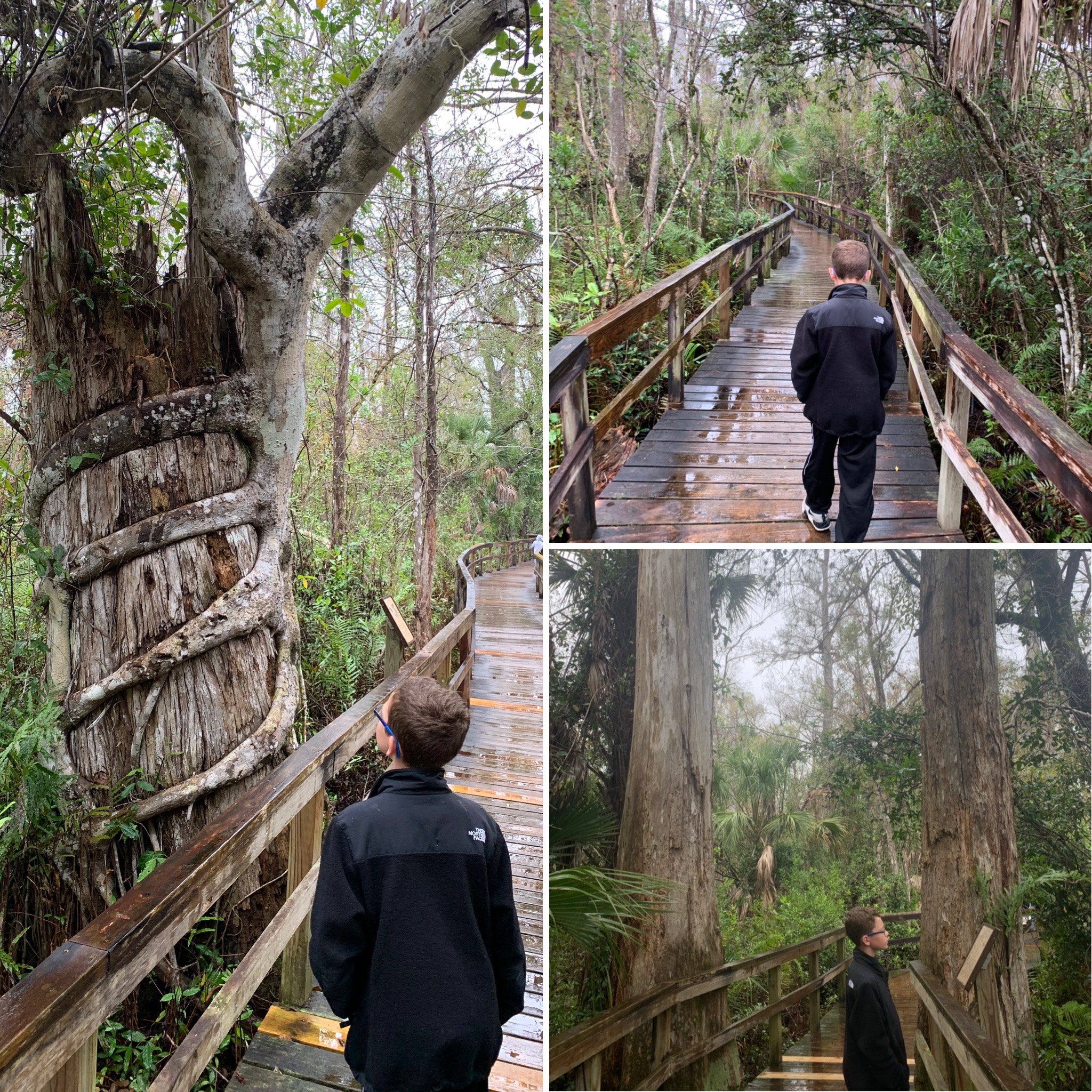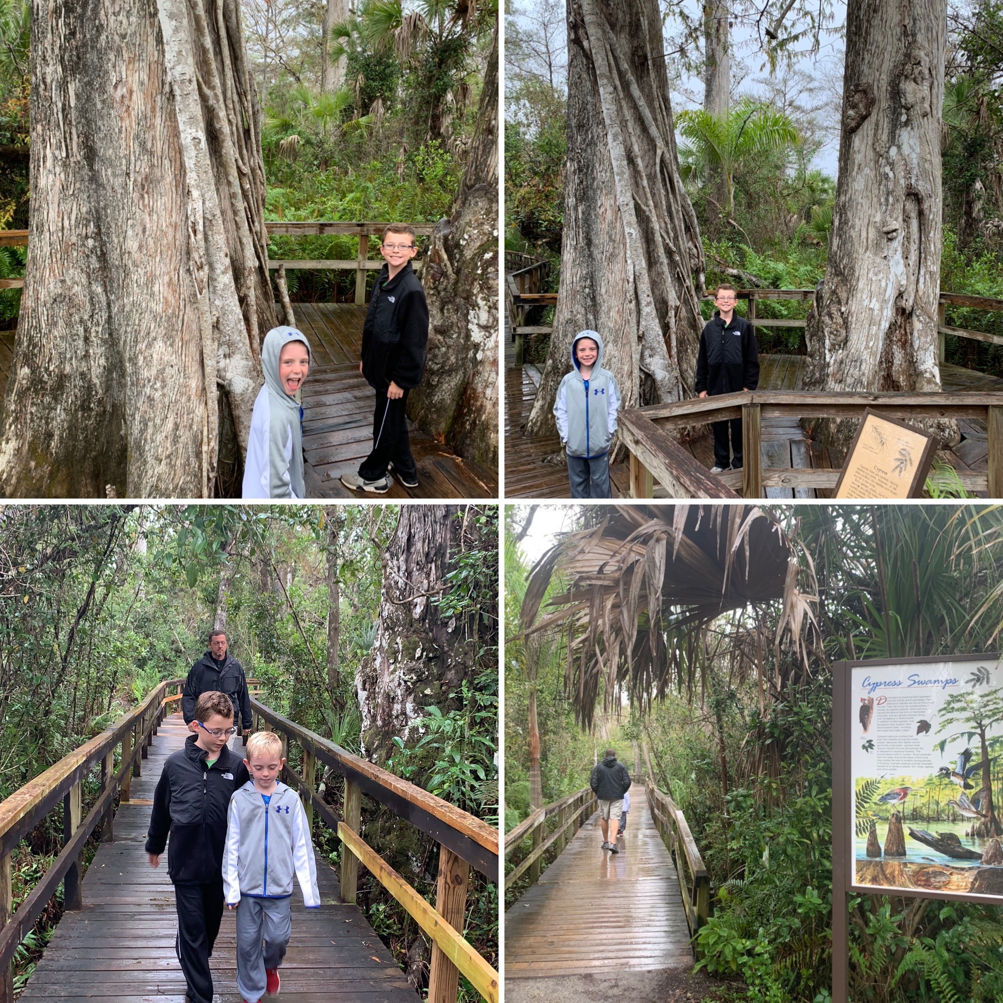 After the Preserve, we stopped off at the Big Cypress Bend Boardwalk in the Fakahatchee Strand State Preserve just down the road. Don’t tell them my boys tried to climb a huge Cypress tree. In our defense, really just our excuse, the tree was being killed by a Strangler Fig.