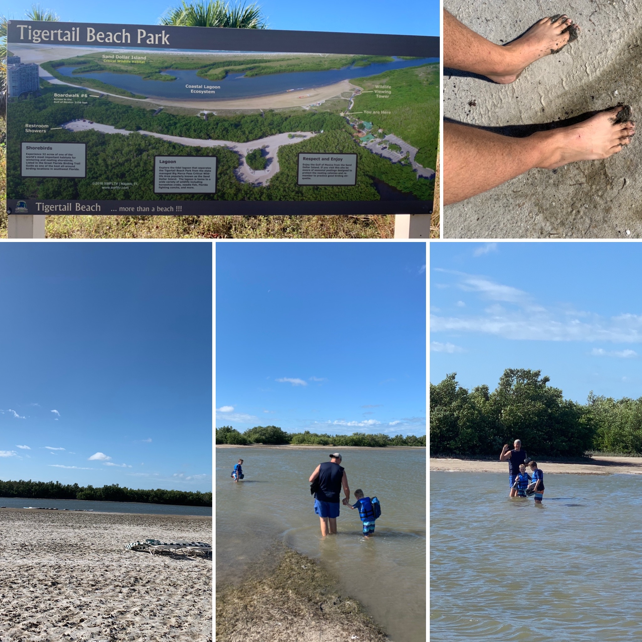 We parked at Tigertail Beach Park. There was an $8 fee for the four of us. Trev had read that you could walk across the saltwater lagoon to get to the ocean. Tigertail beach is on a lagoon so it’s not so great for beaching it. It’s kind of a muddy feeling at the water. They have kayak, paddle boards, and aqua trucks for rent if you’d like. We decided to continue across the lagoon to the ocean side. The boys waded across and I took the very long way and walked around the lagoon. You know I’m not getting in the water.