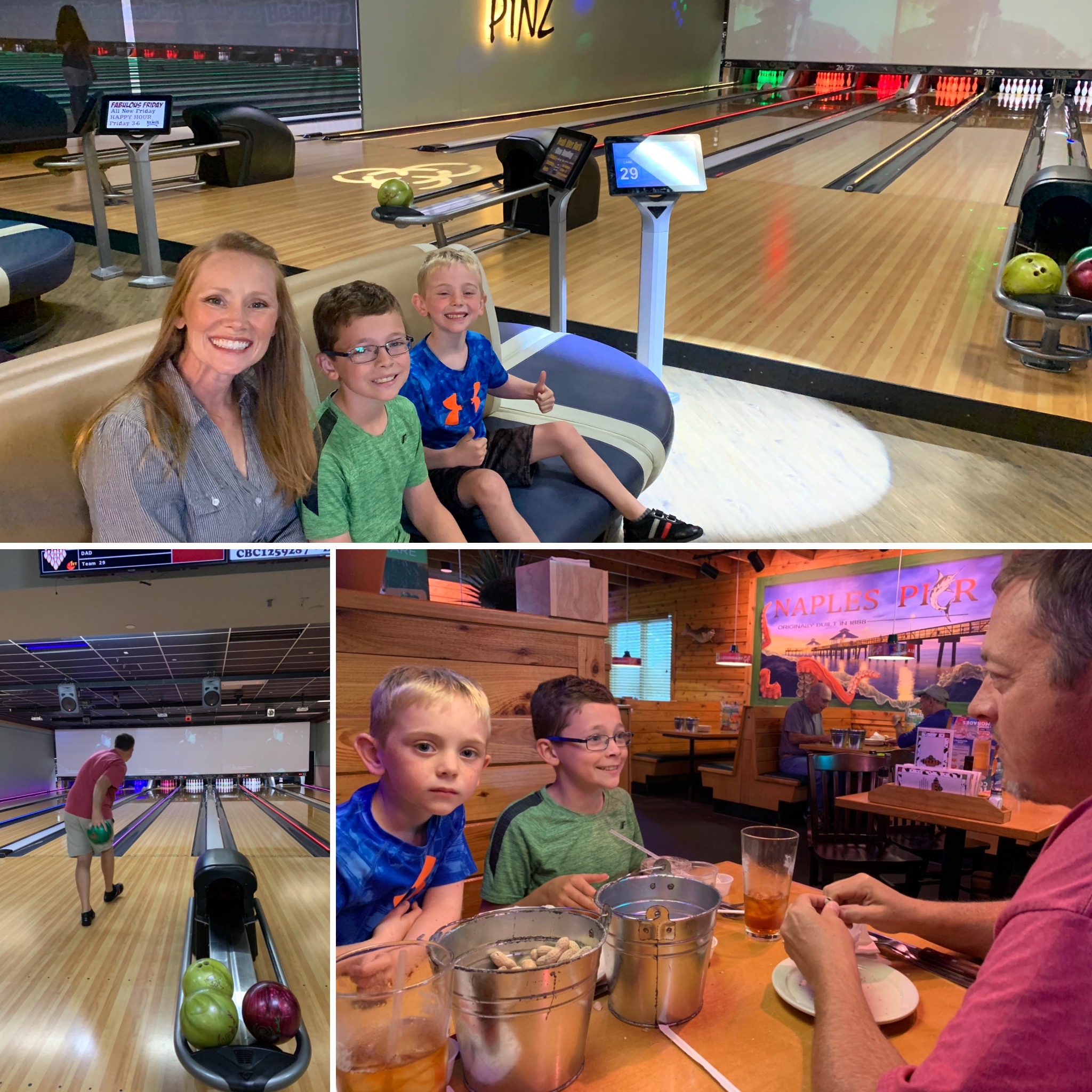 We had some issues with our lane at the bowling alley so the manager didn’t charge us for our second game. A bowling league was having a party and shared some goodies with the boys. Sweet. Please don’t ask who won. I don’t want to have my face rubbed in the fact that I lost…repeatedly.