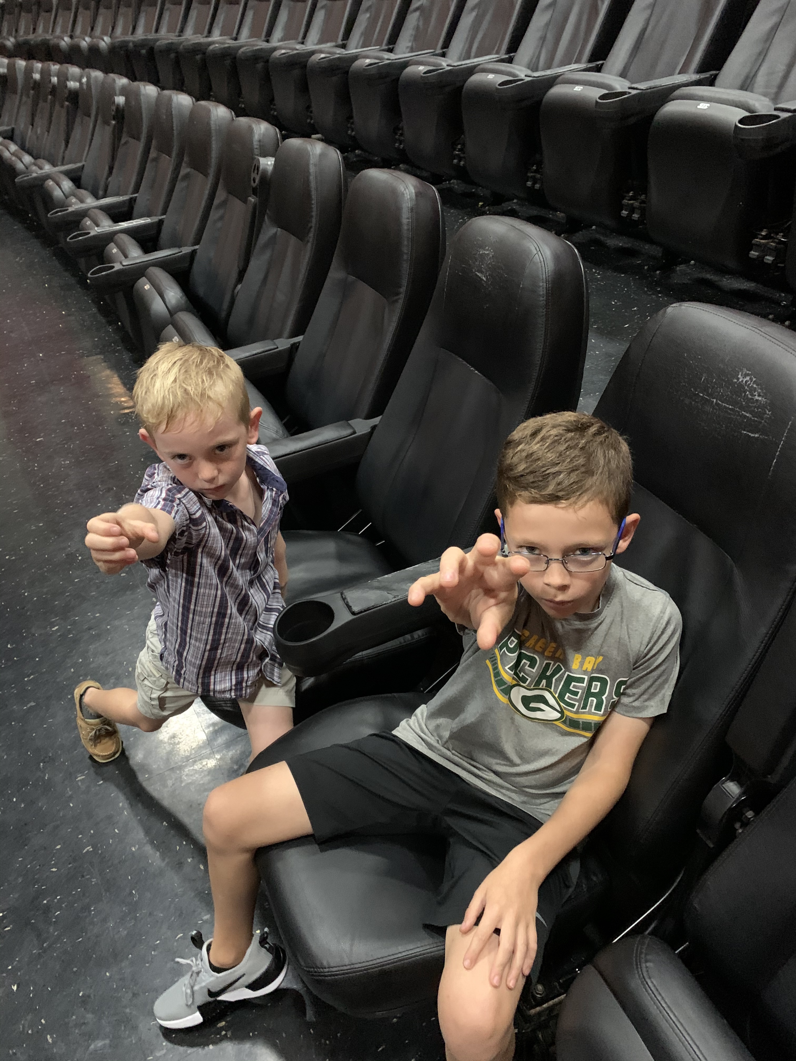 After lunch it was time to go to the movies. The boys have been dying to see the last Stars Wars movie. Today was a great day for that given the rain. Yep, that’s my knuckle heads channeling their inner Jedi.