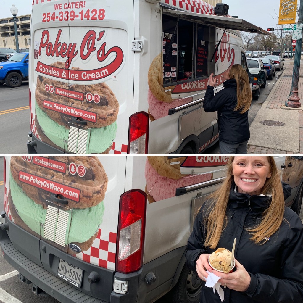 Then we ended the afternoon with a stop at PokeyOs ice cream food truck for an ice cream sandwich. I ordered butterfinger ice cream with chocolate chip cookies and the boys had birthday cake ice cream with snickerdoodle for Mason and chocolate chip for Tuck. This time my research did not disappoint. Yummy!