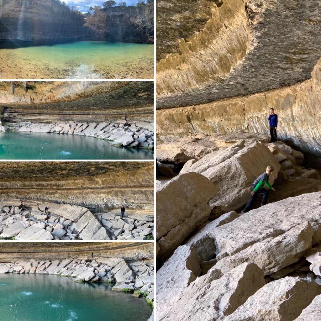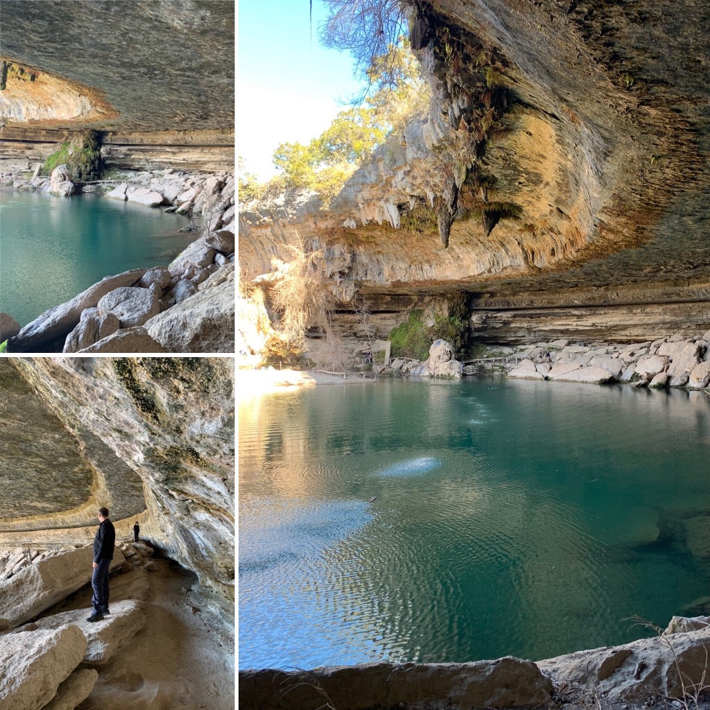 One was the Hamilton Pool Preserve. This place is beautiful. There is usually a reservation system, as they only allow a limited number of visitors at a time on the trail. However, we went during the week so we didn’t need a reservation. Be sure and check their website before you drive out there. There is a per vehicle fee. I think we paid $10 or $15. Sorry, I can’t remember the exact amount.