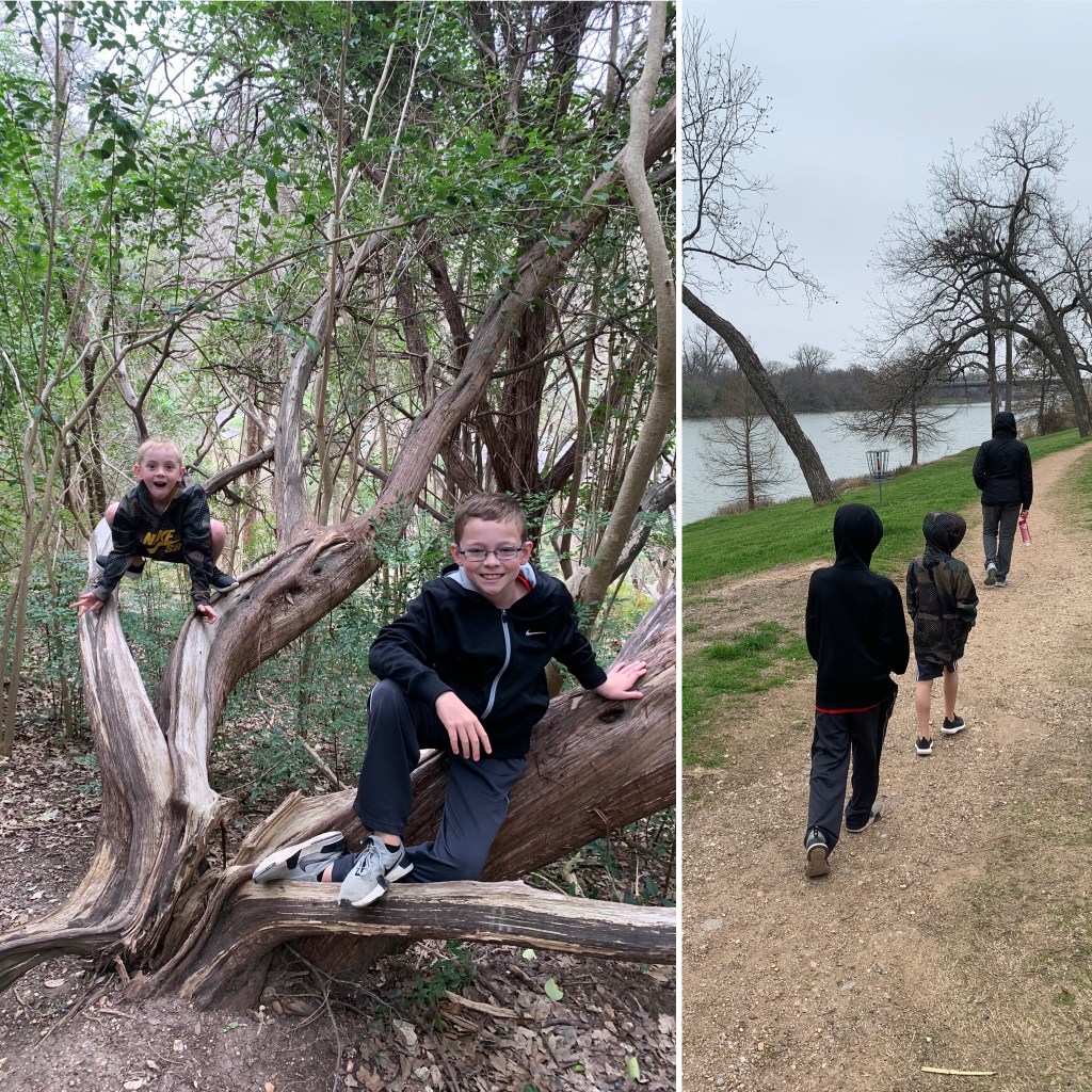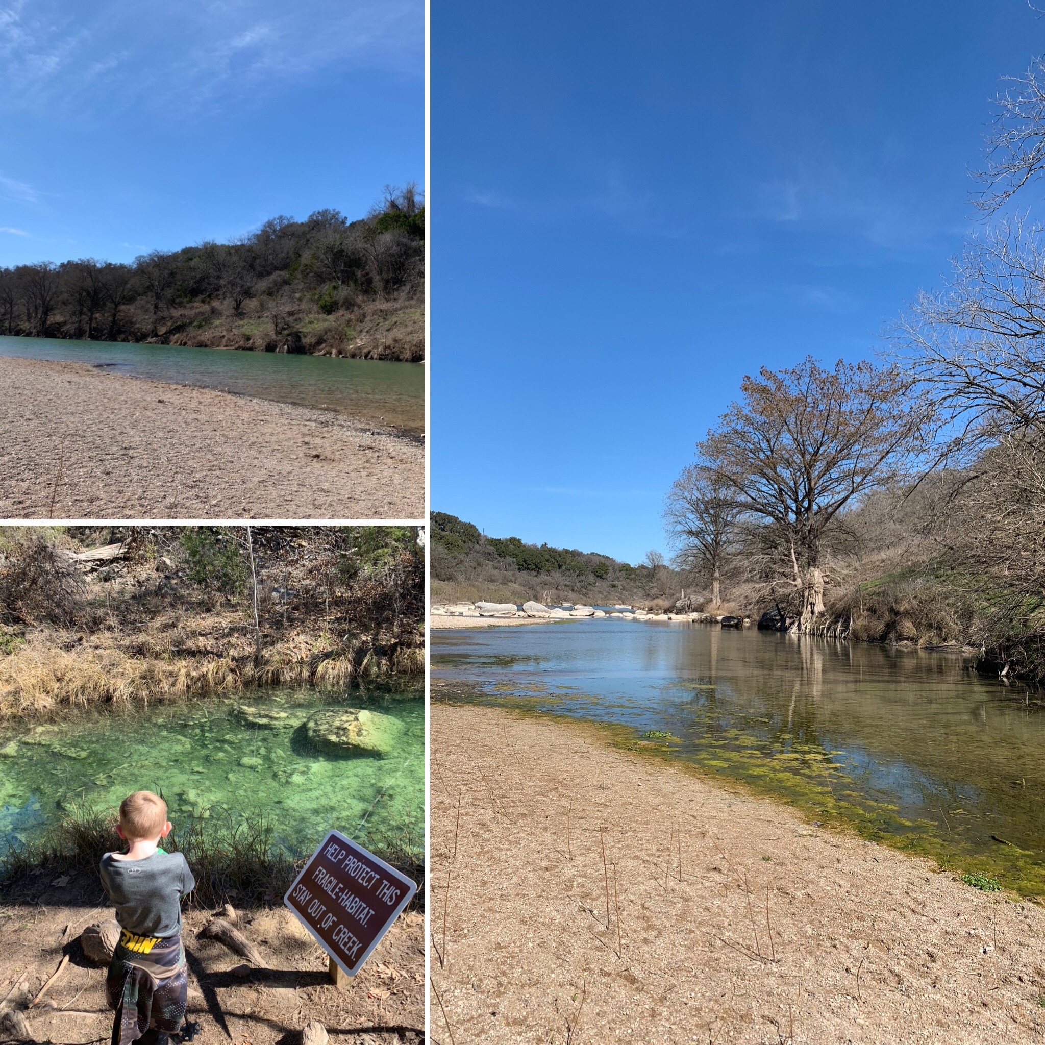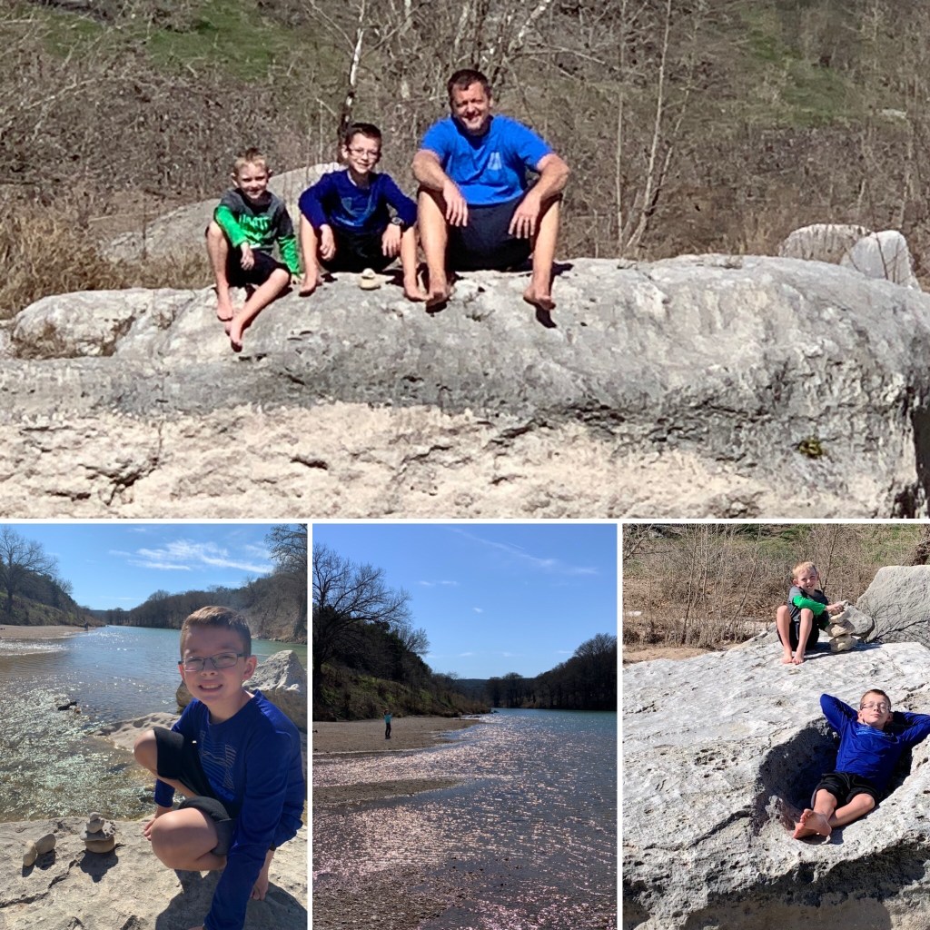 Lots of people just walk out to the pool and back. But don’t miss the Pedenarles River trail. It’s a mile and a half round trip hike that leads you down to the river. The weather was great and the boys had a great time wading around, skipping rock, and chilling. We all loved this area.