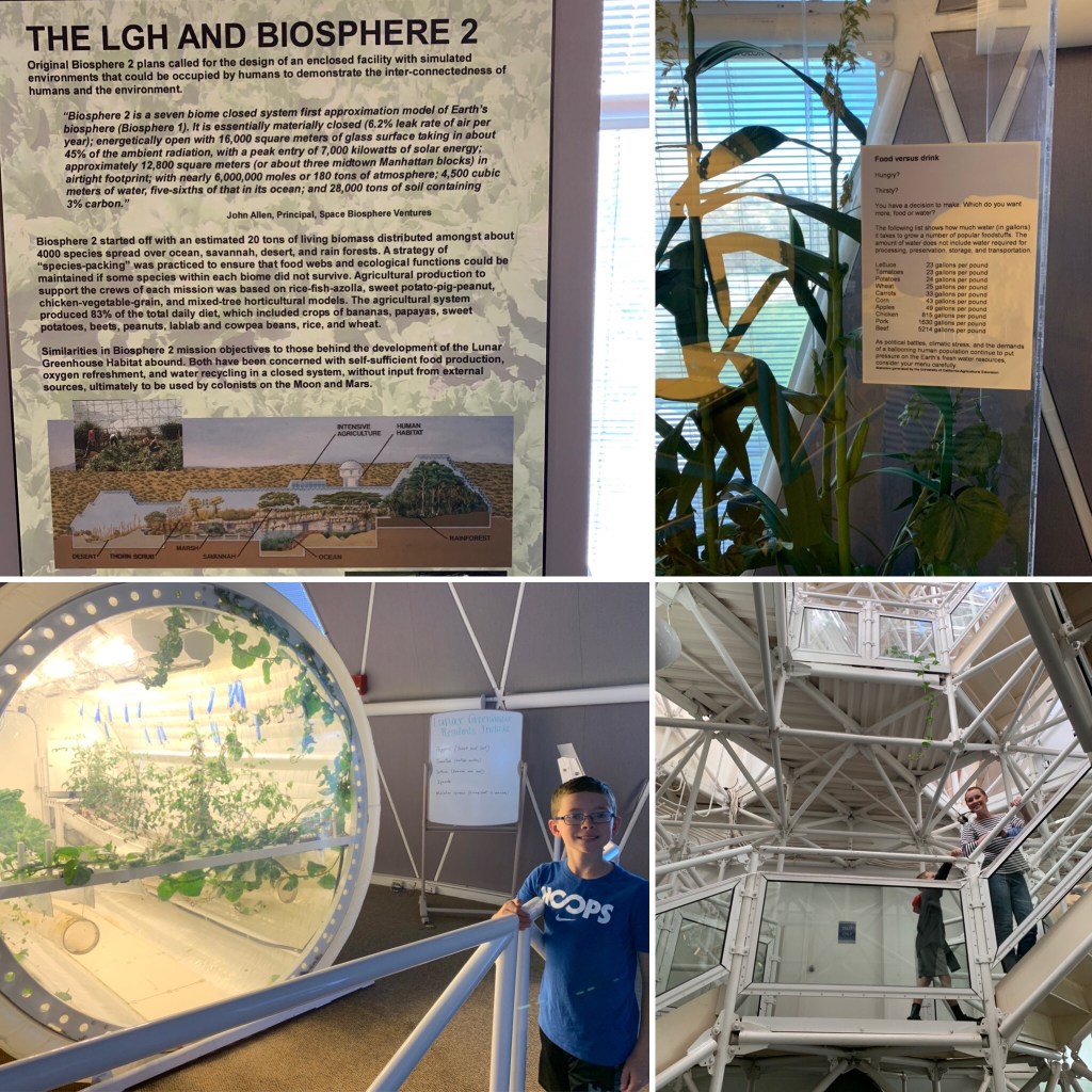 When you leave the “lungs” you walk back around to the front passing the agricultural hills and the solar panels. Mason thought it would be amazing to be one of the people to be sealed inside. Based on some of the information I read about this place, it wasn’t so amazing. Long hours, hard work, low oxygen, interpersonal issues, and management problems made for a lot of drama. But a lot of research came out of the closed systems projects and the experiments that are continuing to take place.