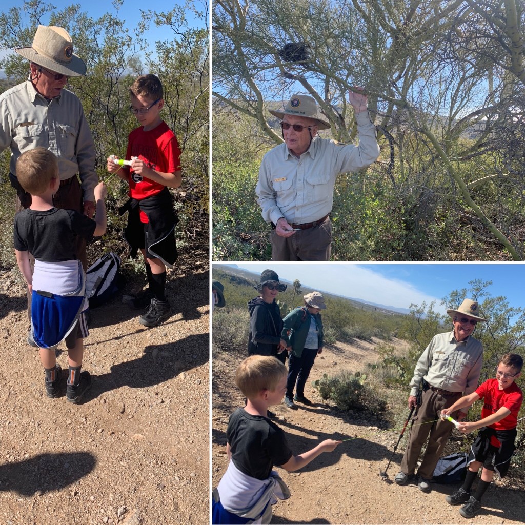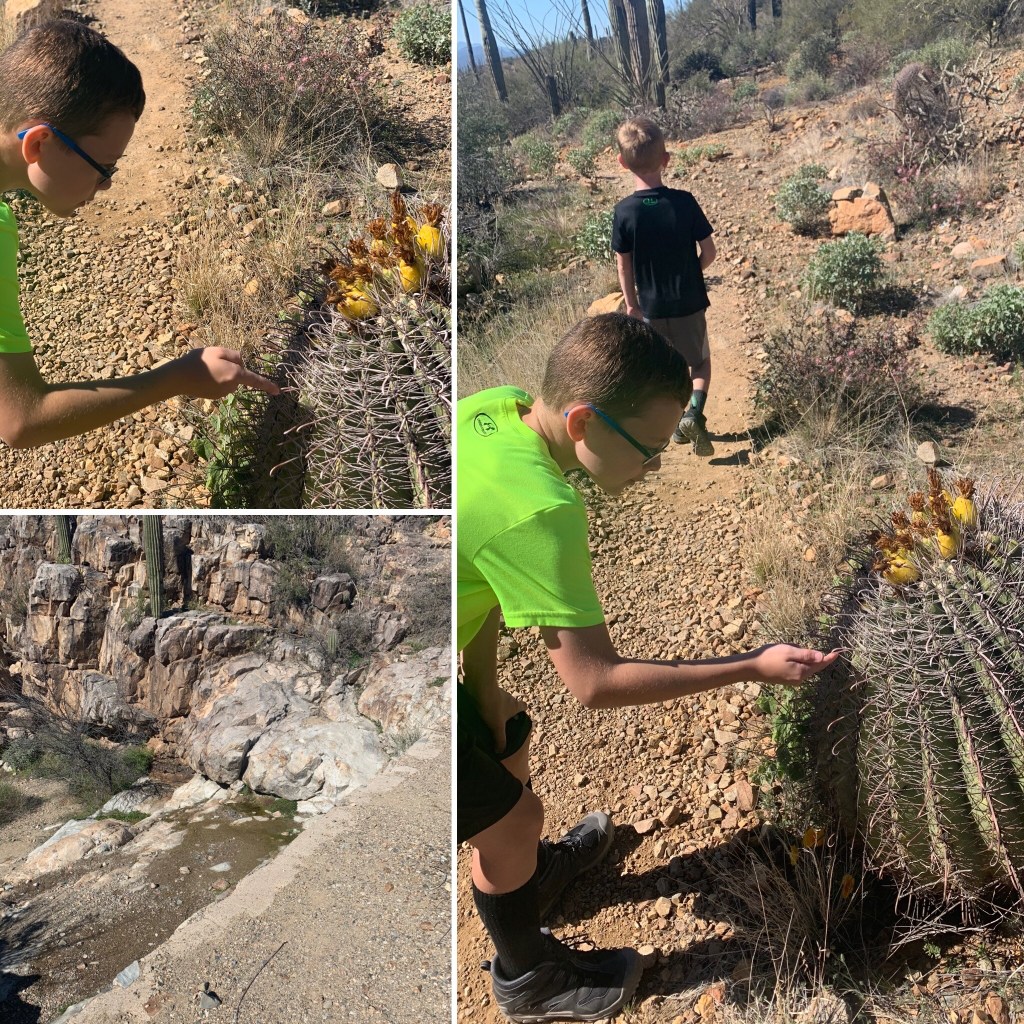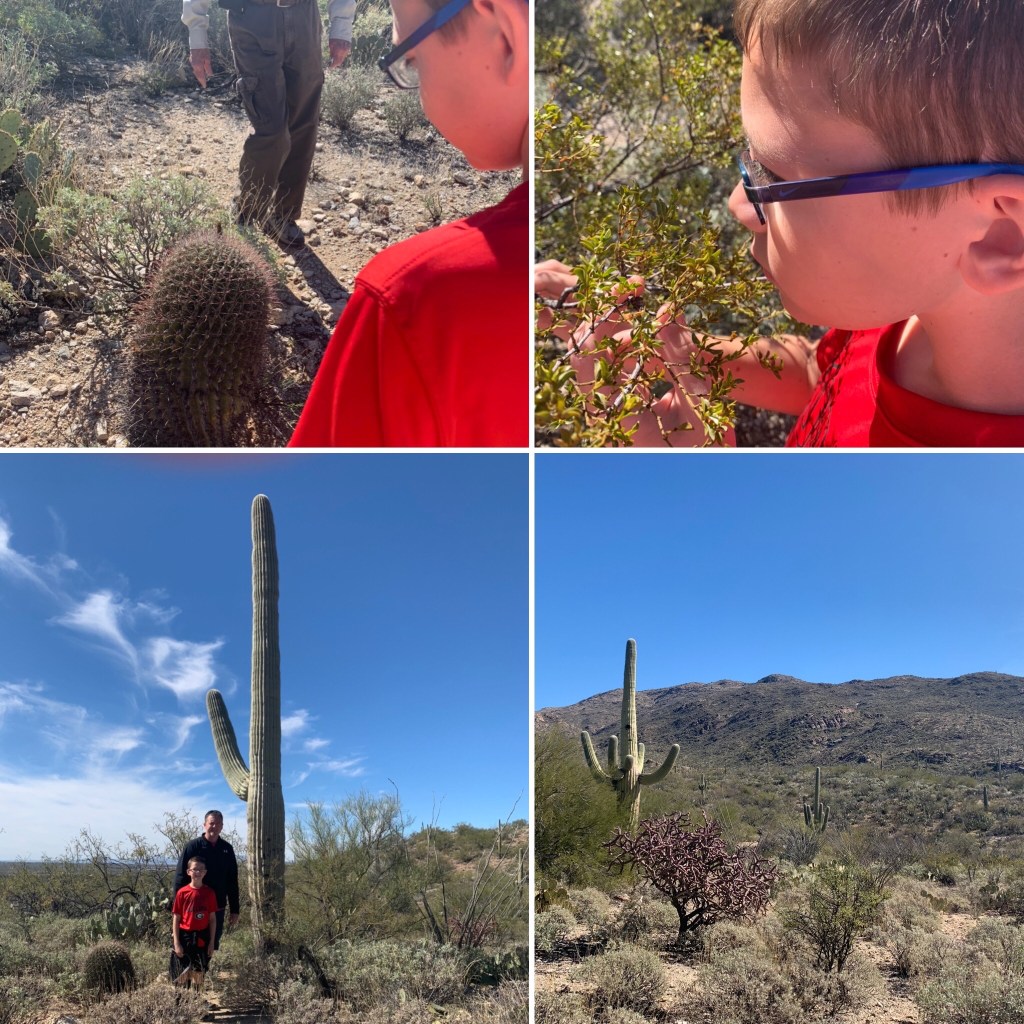 We were there in time for a guided tour. Volunteer Bob, is very passionate about the park. He did a great job helping us to identify safe verses unsafe plants and he gave us lots of information about how these plants grow in this environment. The boys helped him demonstrate a saguaro cactus’s root system.