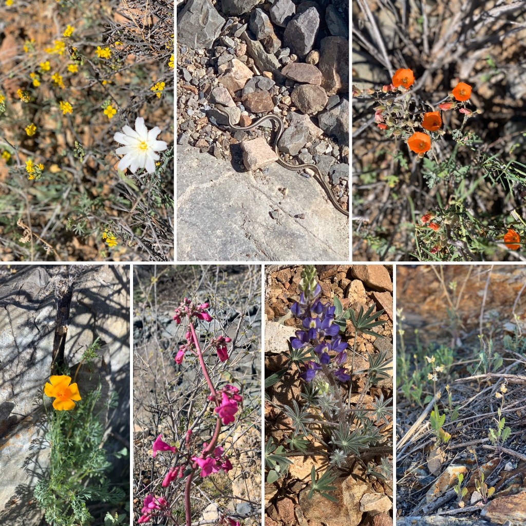 Even though we are here in winter and the cacti aren’t blooming, you can still find some pretty blooms in the desert if you look for them. You can also find a little snake along the trail. Trevor and Tucker, both walked right past this little fella. But he was pretty agitated by the time I passed by. So glad he wasn’t a big rattlesnake!!