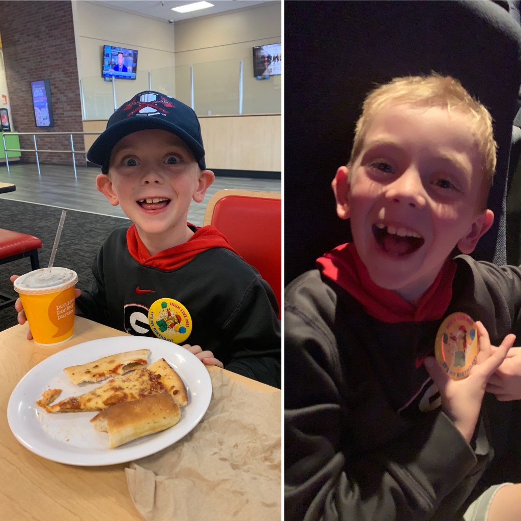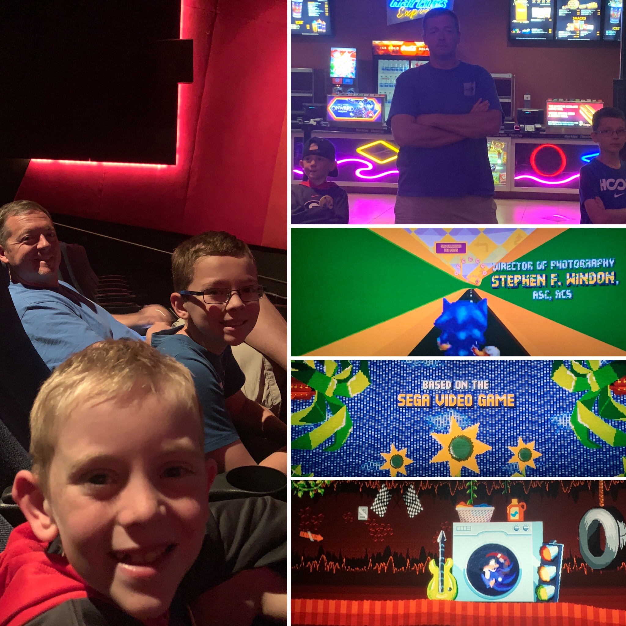 Then is was time for a trip to the movies. We watched Sonic the Hedgehog. It was a cute movie and the boys loved it. Add in some Skittles and this kid was all smiles.
