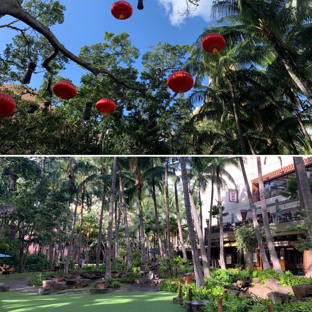 On our way to lunch we walked through the Royal Hawaiian Center. It’s a big high end shopping center but it also has this beautiful green space where they hold hula lessons and cultural events.