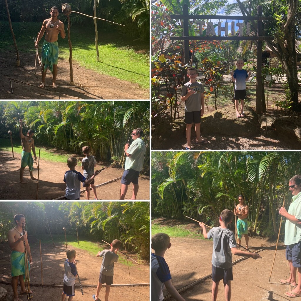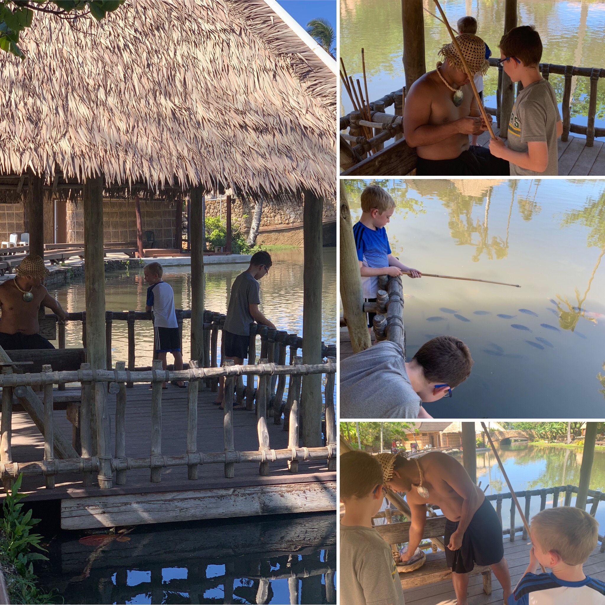The next village was Tahiti and it was the boys favorite because they got to fish with a bamboo pole and….