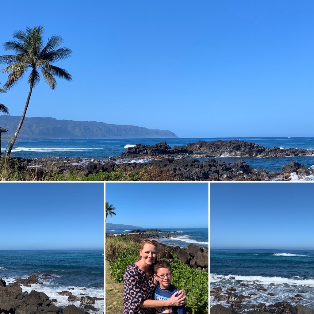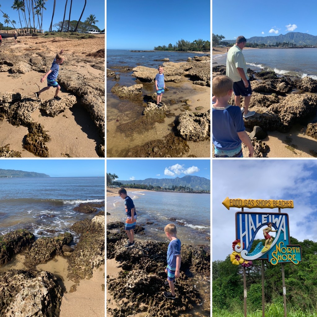 Next we stopped at Waimea Bay Beach. We were going to let the boys swim but the waves were breaking so hard, we didn’t think it was safe. We let them play along the edge.