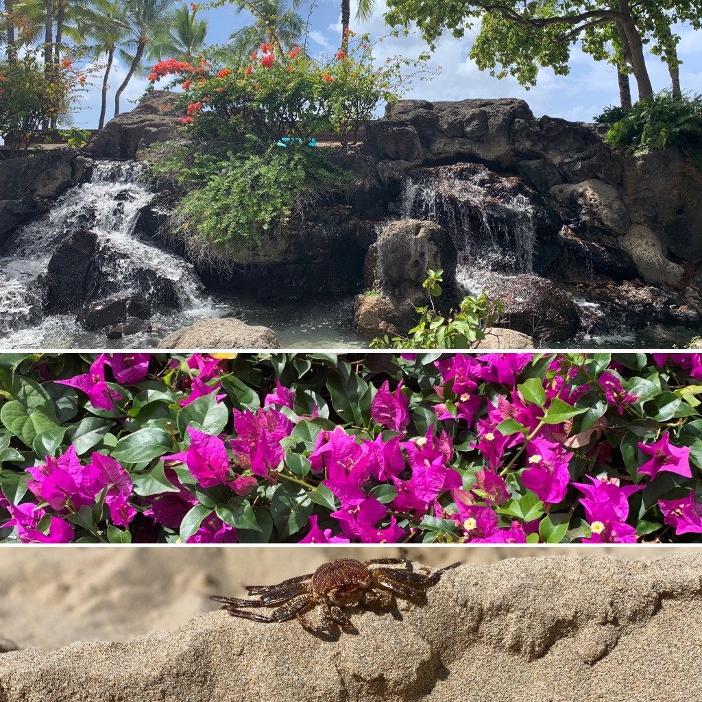 First thing we did when we got to the hotel, was find the beach. Due to the weather, a lot of the places have this open air vibe. The top picture below is of the lobby to the Embassy Suites we stayed in, no doors, just open entry. Our room was a suite so it had a full living room with a separate bedroom. We didn’t know what to do with so much room.