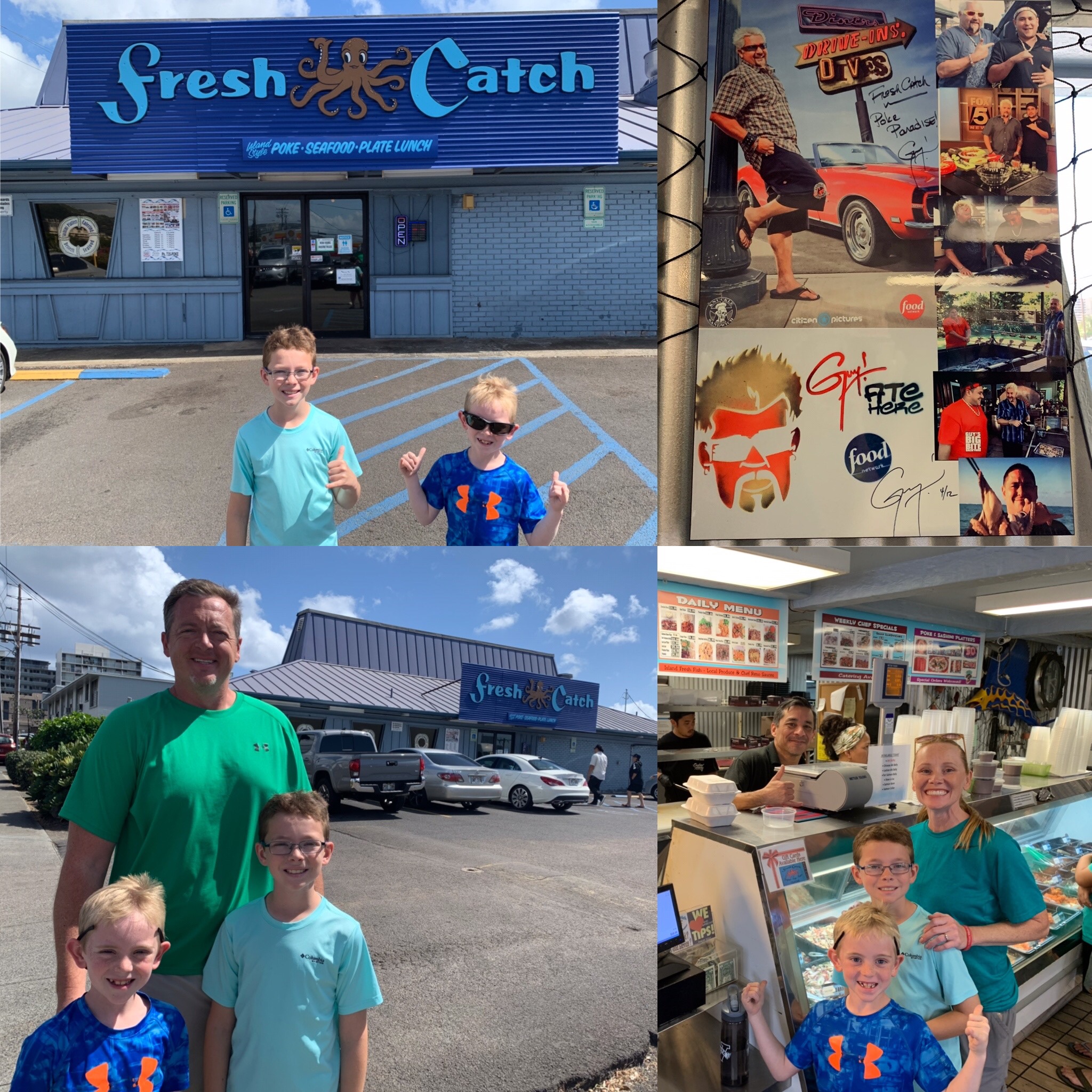 The food was great!! And we know because we had some bad poke later on in the trip. None of it compared to Fresh Catch. We tried (and loved them all) ahi poke with limu seaweed, smoked tako poke (smoked octopus), but our favorite was the ahi shoyu poke. So good. Mason wanted to go back everyday, he liked it so much.
