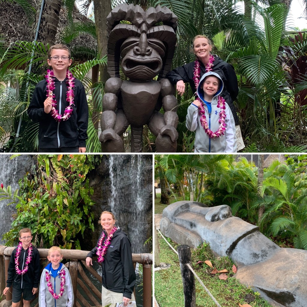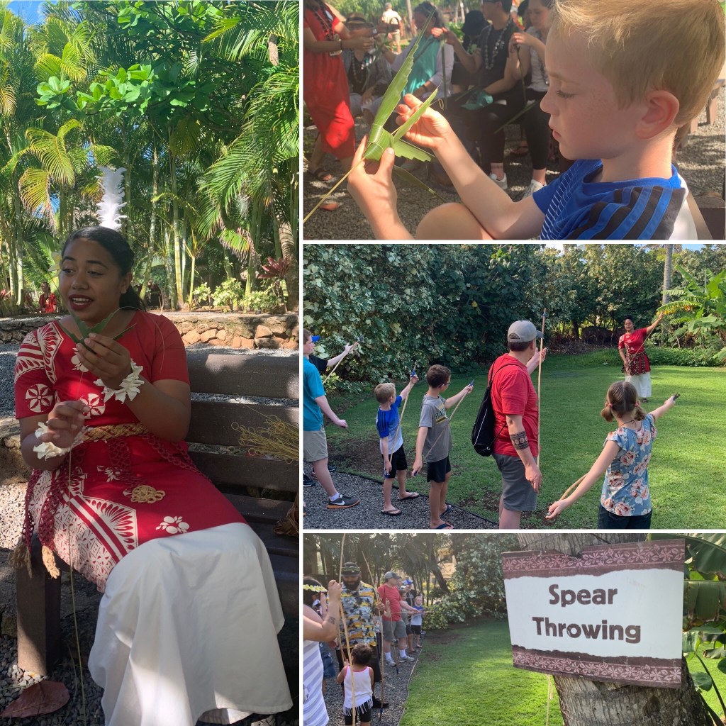 Trev asked me what I wanted to do when we got to Hawaii (since they could stay on the beach the whole time). I really just wanted to go to a luau where there’s pig in the ground and I get a flower lei. Little did I know how pricey the luaus are; many were $500-$600 for the four of us. Ouch! Enter the Polynesian Cultural Center. It was still over $450 but we got three day passes to the Villages part of the Center along with the luau I wanted and the HA: Breathe of Life Performance. That kind of took some of the sting out of it. Educational and entertaining so we went for it.