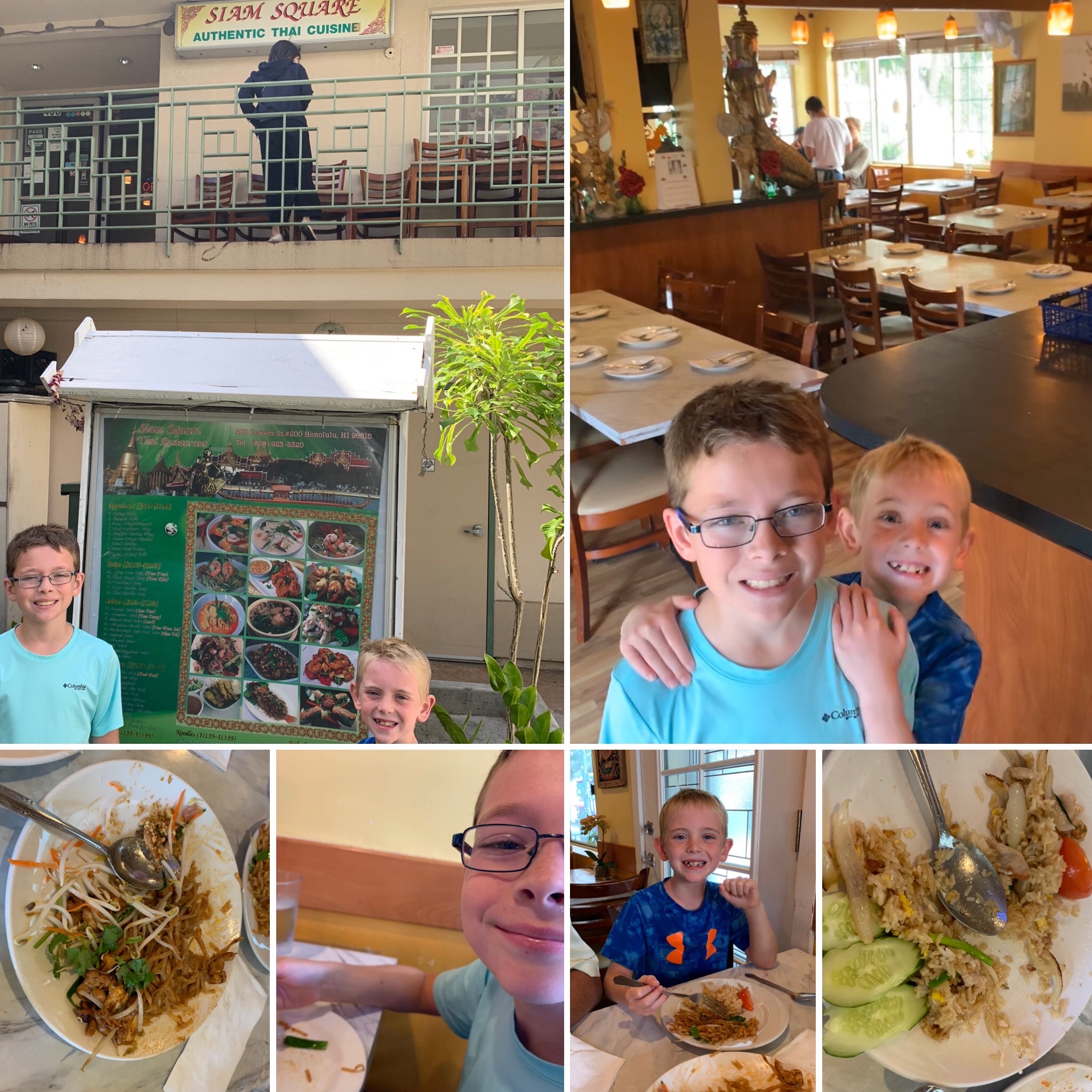 The next day, we moved down the beach a little and it was less crowded and we had some more fun in the sun. I’ll spare you more pictures of my kids playing in the sand. Mason wanted to hit Opal’s Thai Restaurant (another Triple D spot) but we didn’t want to get another Uber so we walked to Siam Square instead. He was totally cool with that. We had some chicken Pad Thai and some Thai pork fried rice. Tuck tried both but liked the rice the best. Go figure. We were too chicken to try the curry. We’ll try that when we’re closer to home. Mason was loving that he was the food director. It even made him feel better when Tuck was requesting that Mason pick all the food since he was making such good picks.