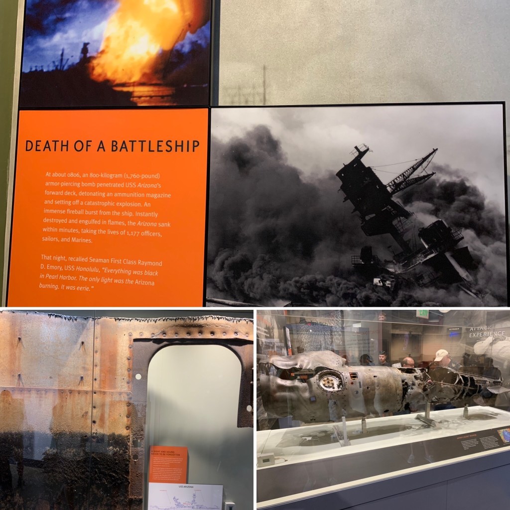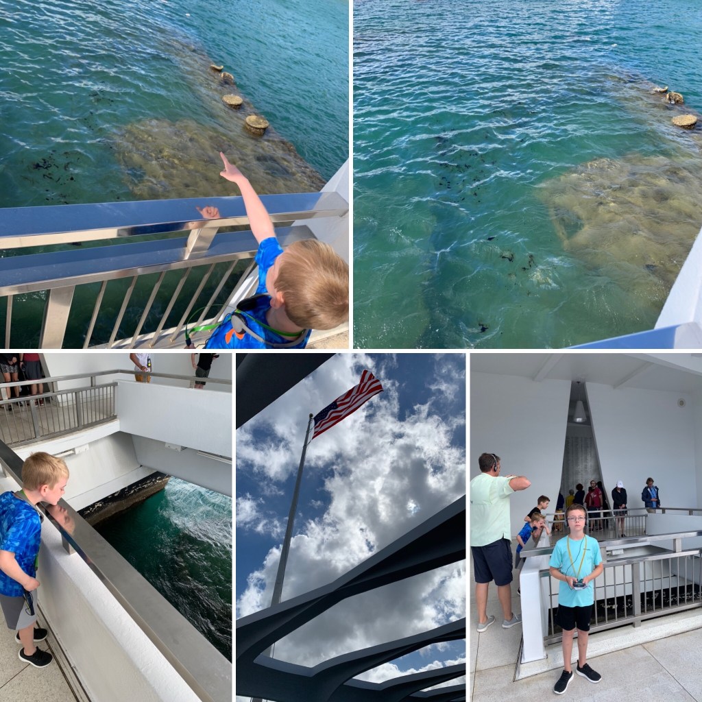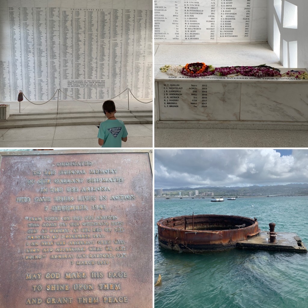 It’s hard to see in the pictures but the top two show oil that continues to leak from the ship to this day. Many refer to it as the tears of the Arizona.