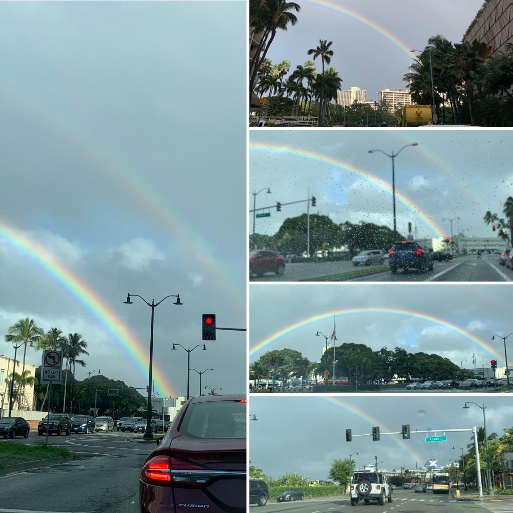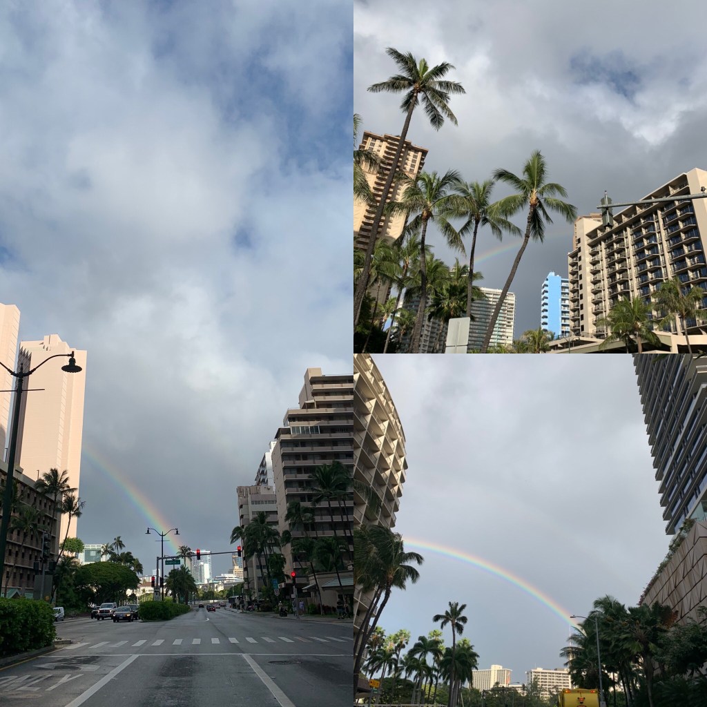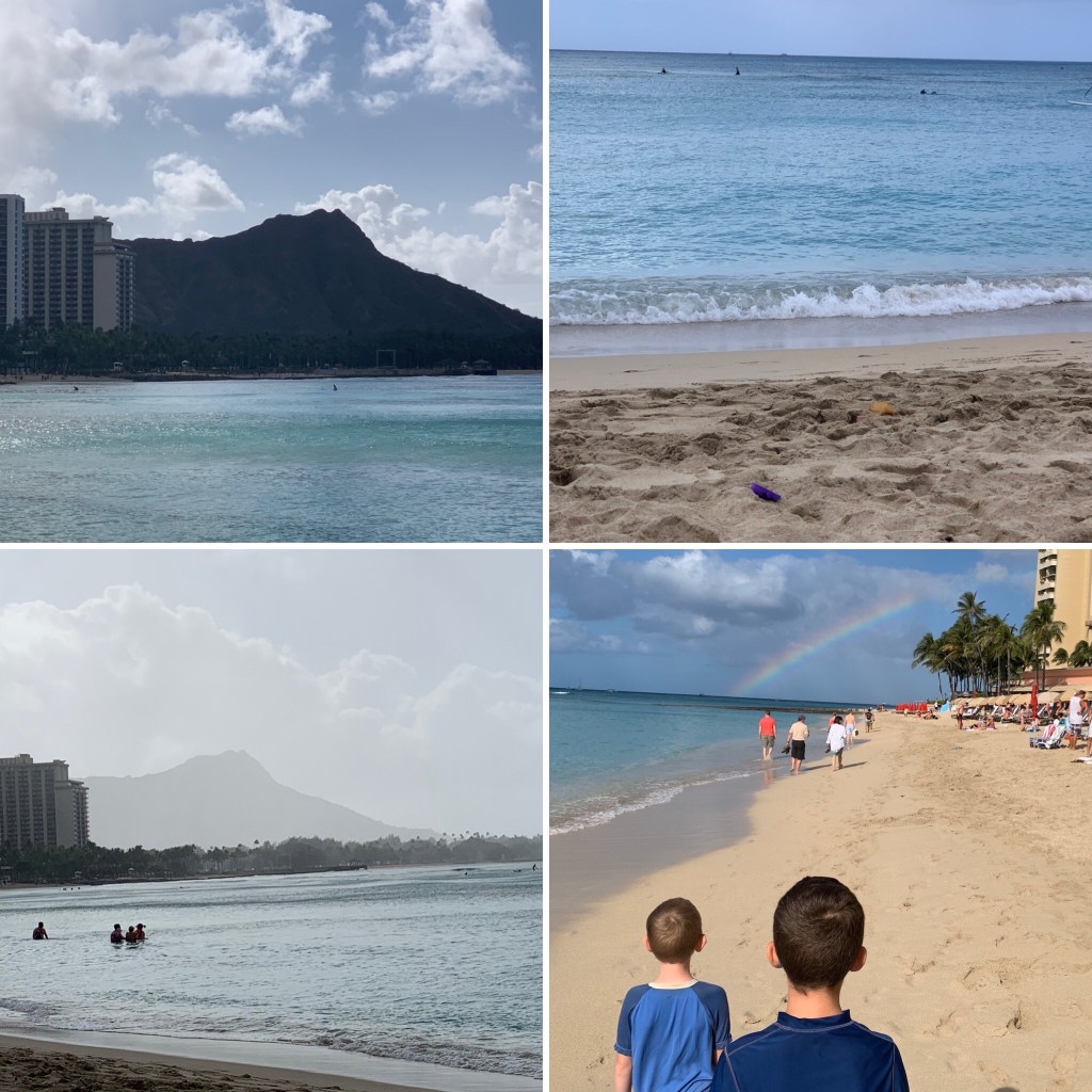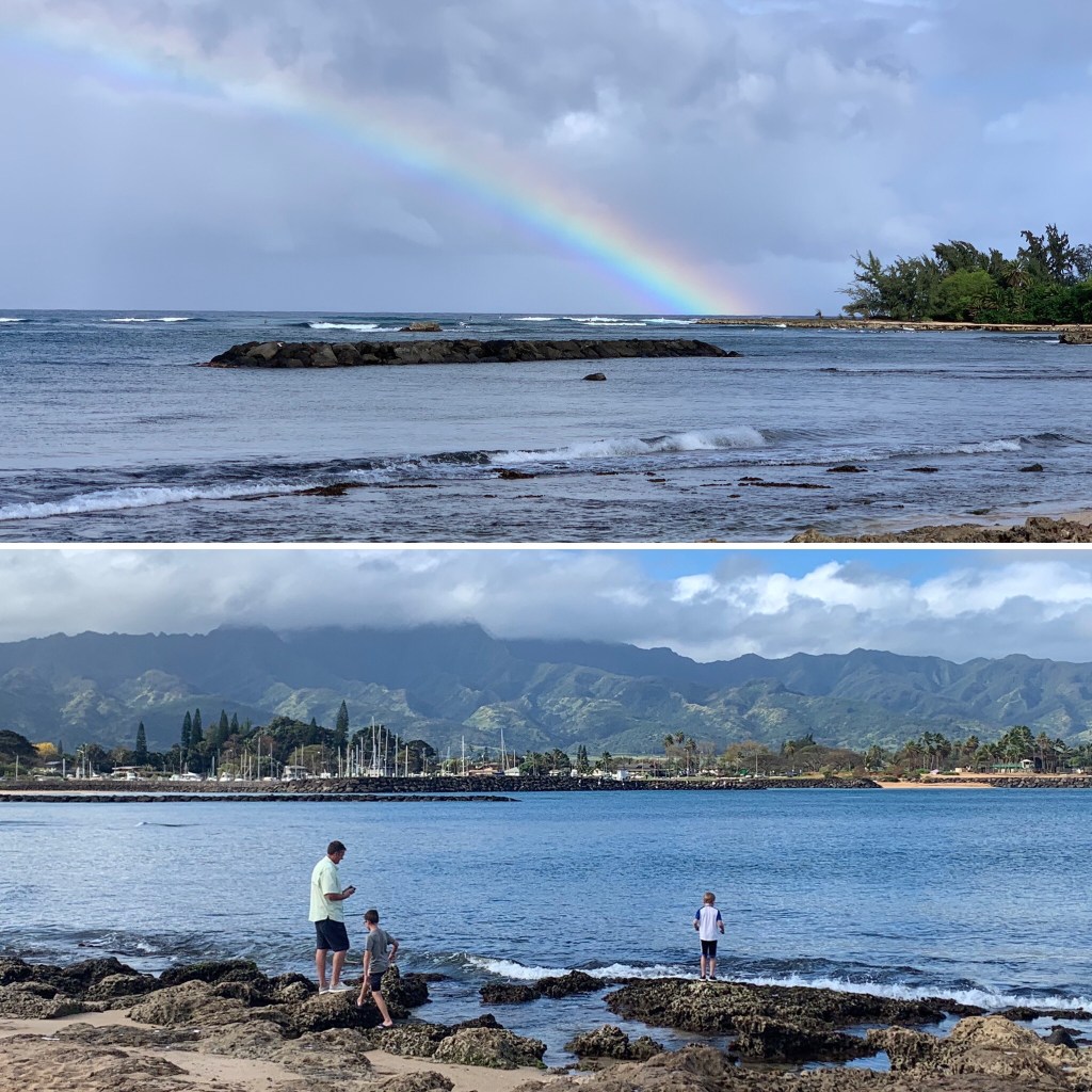 Even though it was cloudy, the water was beautiful and the rainbow in the background just made it feel even more Hawaiian.