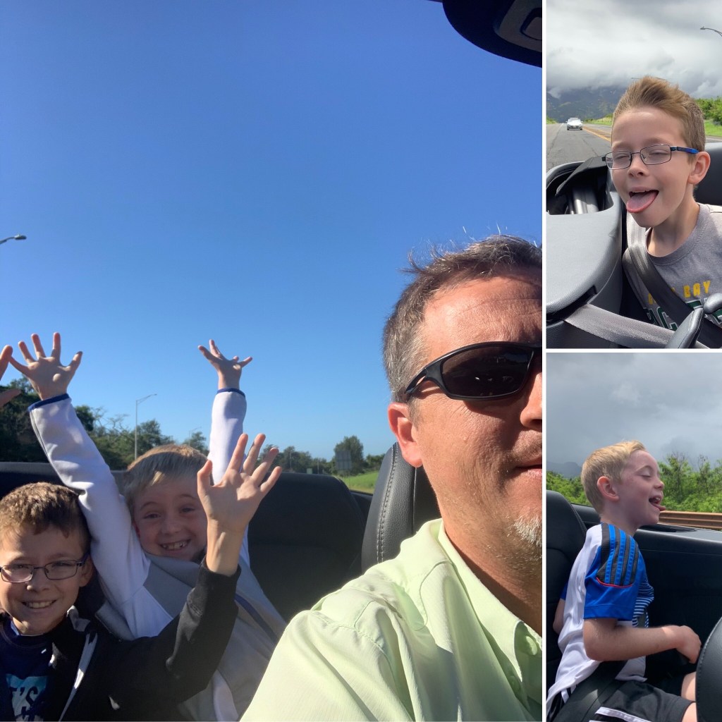 The only problem with our plan was that it rained on and off all day so the top went down, the top came up, the top went down, the top came up. But it was still worth it. The rain provided an abundance of rainbows and double rainbows that day. The boys counted 16 or 17 depending on which child you ask and they will both swear they are right. I won’t even name which male family member the boys get that from.
