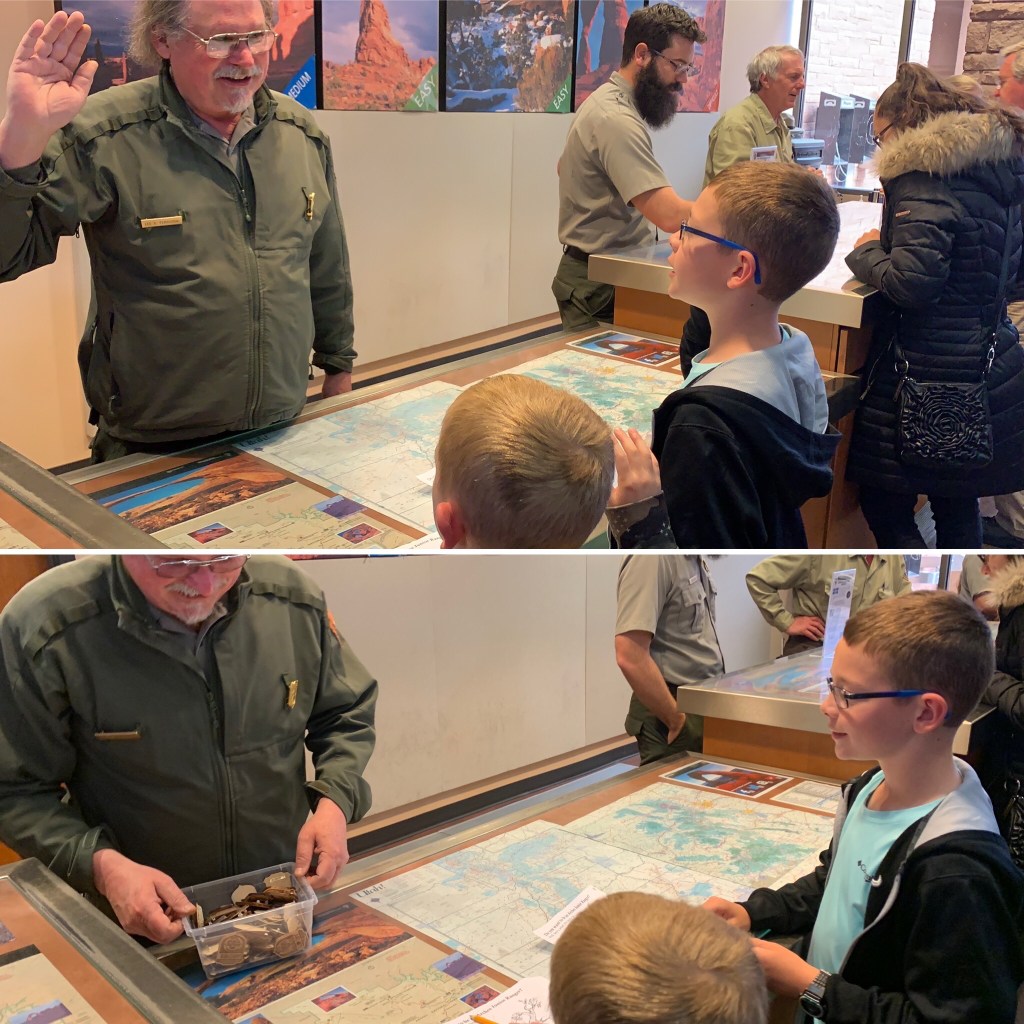 The Double Arch is really cool. We didn’t have a lot of time to explore before the visitor center closed. (It closes early during this time of year). We needed to get back so the boys could get their badges.