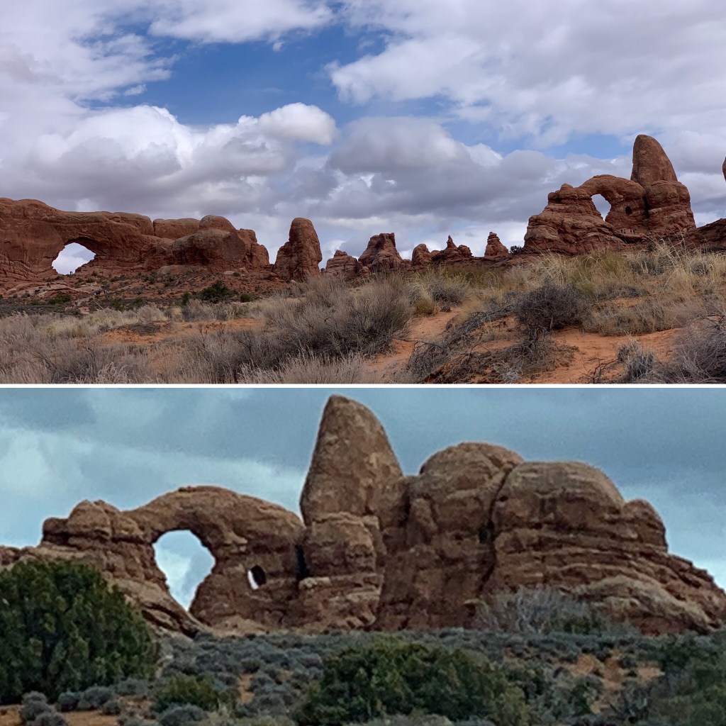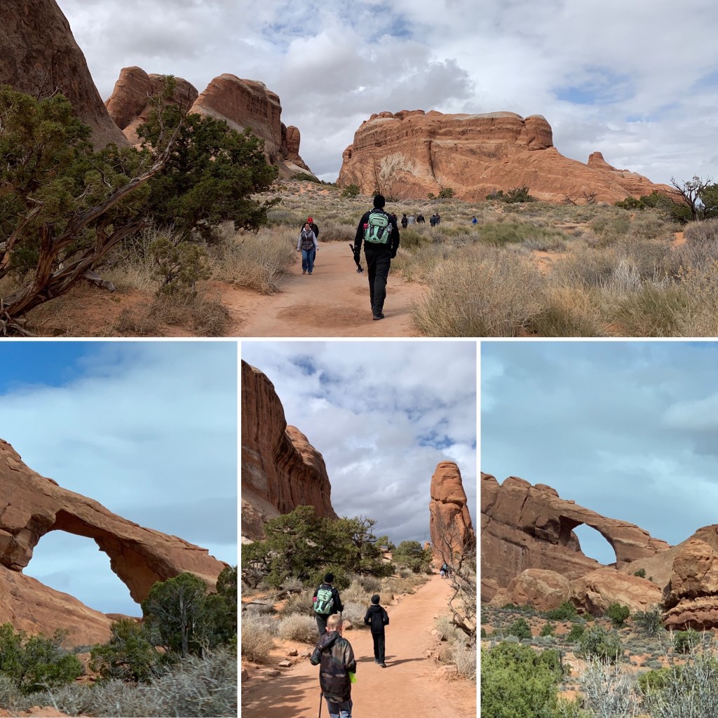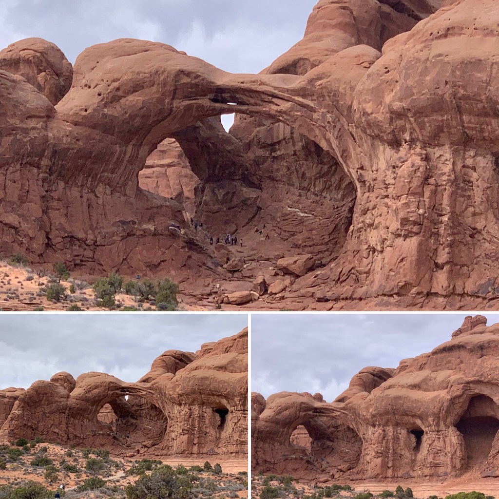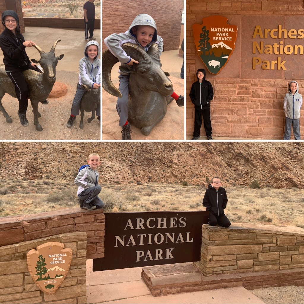 Here we are in Moab to visit Arches. After a much needed day of rest we hit the park. I just have to say it again. I can’t imagine visiting during the busy season. We are at the very start of what they consider their busy season and we were concerned about finding a parking spot. I think full parking lots would suck the fun out of it for me but if that’s when you can go, you go, right? That’s when you try to be patient and kind and make the best of it, knowing the reward is worth the minor aggravation. I’m not sure if these knuckle heads below, are supposed to climb on these big horn sheep (I didn’t see a sign not too but that can’t be good for the sculpture), but there you have it.