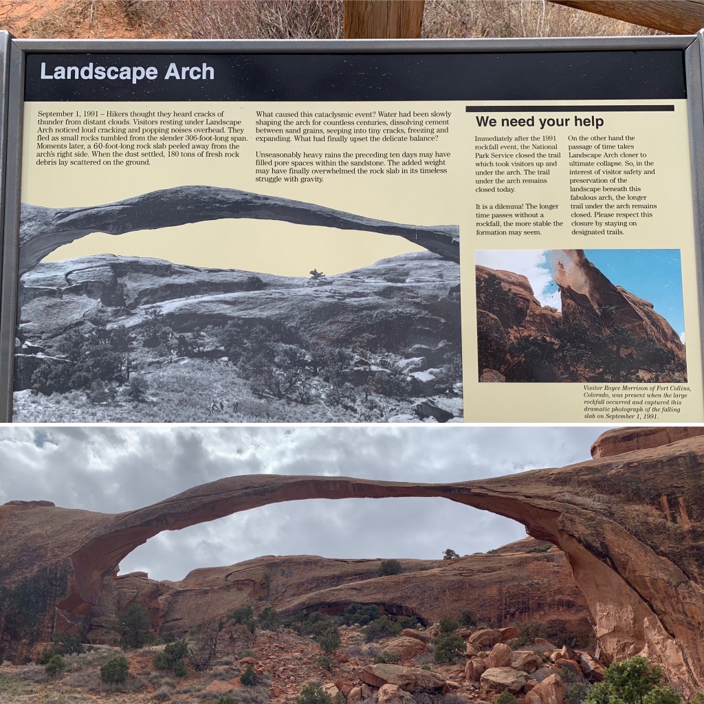 Nothing lasts forever. Nature reminds us that everything has a lifespan. Part of this 306 foot arch collapsed in September 1991 and the Park Service has closed the trail due to concerns of the final break. You can still hike out to it but you are no longer allowed up the part of the trail that ran under the arch.