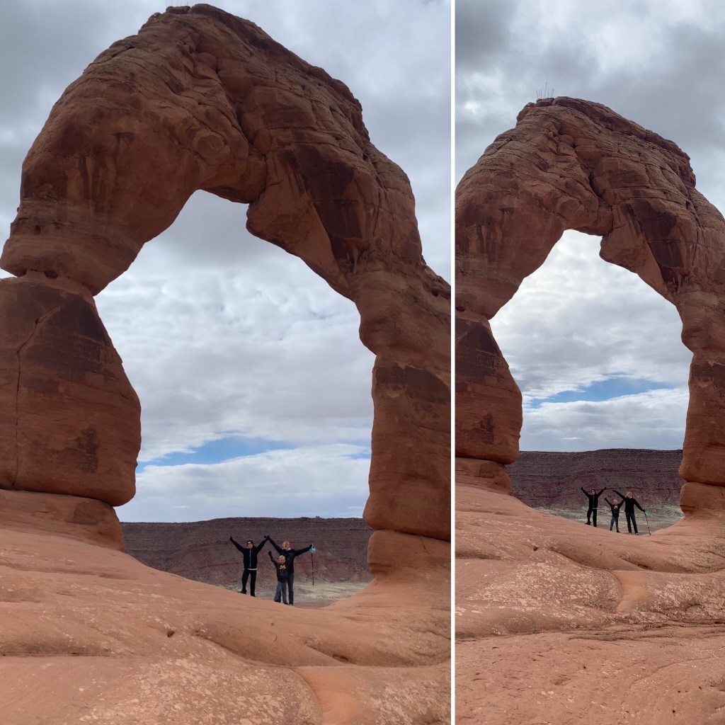 Delicate Arch is considered a difficult hike as it climbs 480 feet up a steep slickrock slope. Right before you get to the arch there’s a narrow rock ledge for about 200 yards. But never fear, if you’re not into heights or steep climbs, you can drive out to the Viewpoints instead.