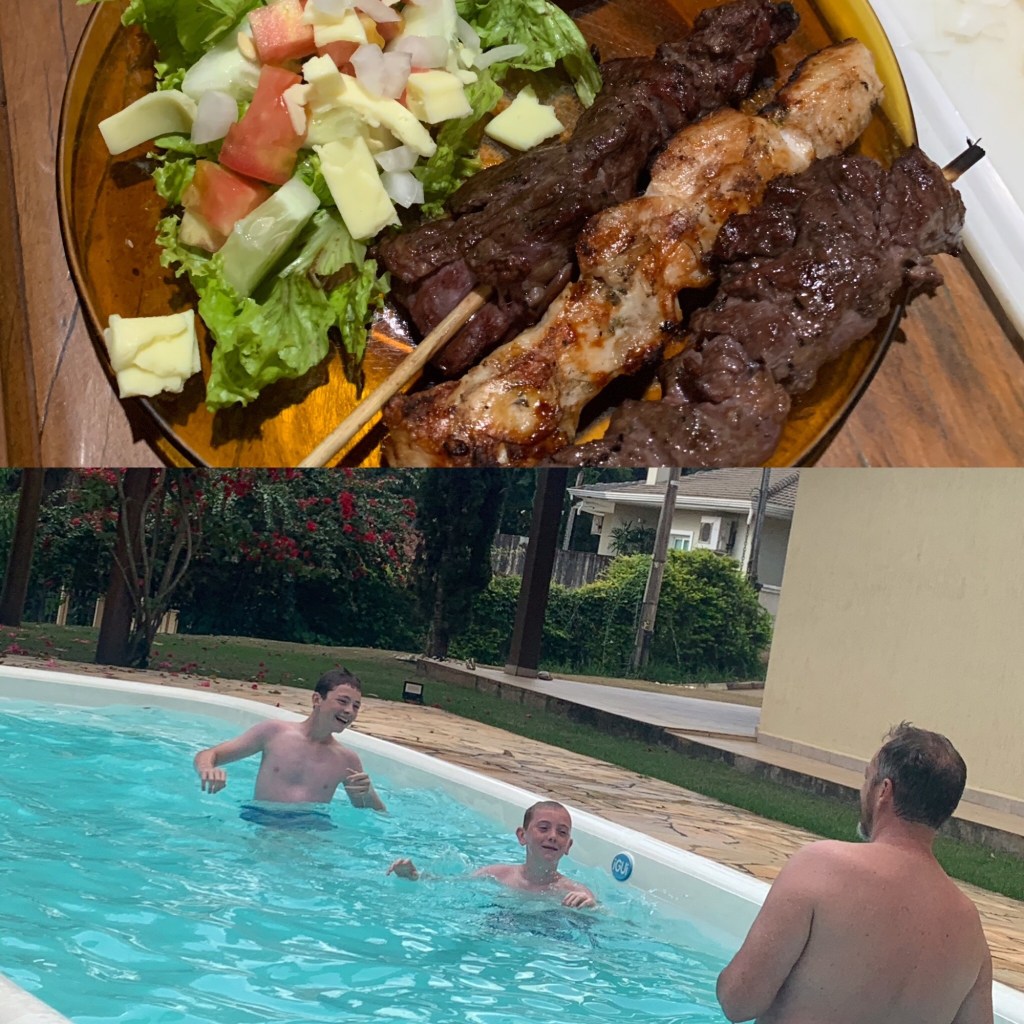 The boys were able to find a little time to grill some kabobs and play in the pool (the large bathtub, as I like to call it) for a little bit this week.
