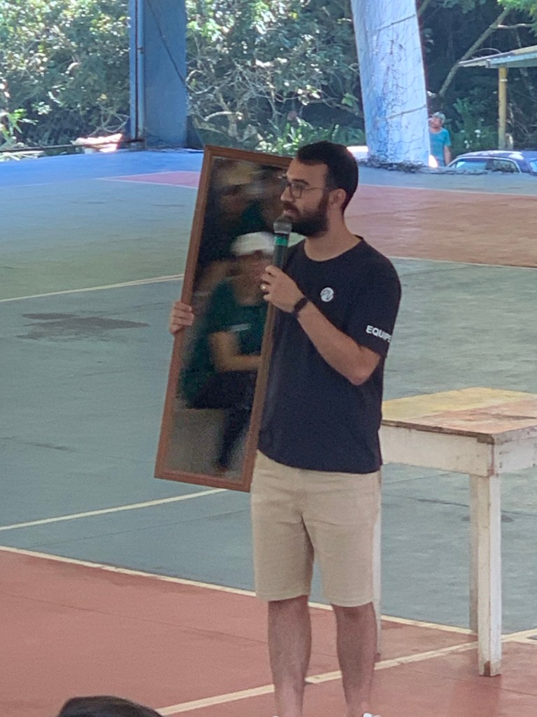 And of course, everything we do with the kids is Christ focused, so there was a wonderful devotional time using the analogy of a mirror to show how we are a reflection of God (front side of mirror shown). But when there’s sin, (the back side of the mirror), it’s still a mirror but it doesn’t reflect. When we accept Jesus (mirror gets turned around) and we are again a reflection of Christ. If I knew more Portuguese I could give you a better summary. Luckily the kids heard it and understood. They had such a great day! They were grinning from ear to ear.