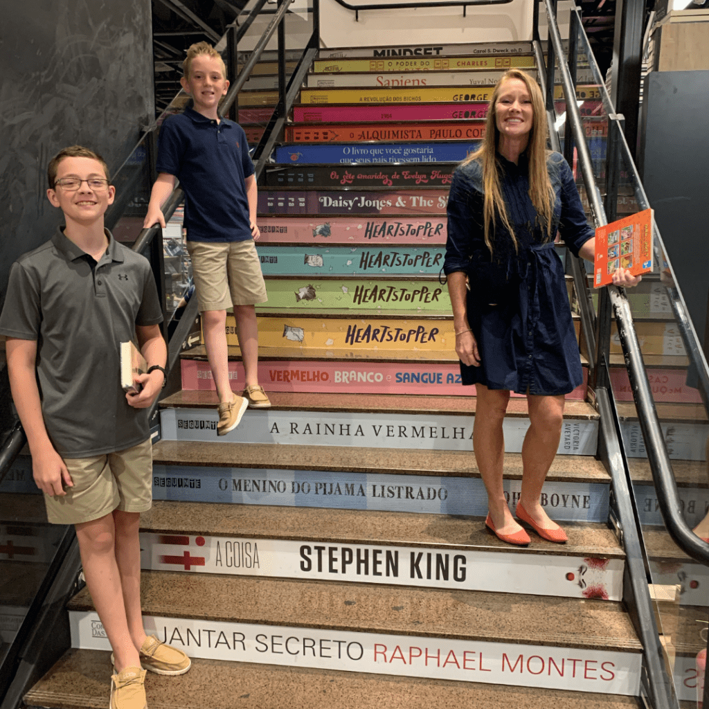 But there was no shortage of security at Parque Dom Pedro. You know Trev and I aren’t shoppers but a girl’s gotta eat, right? Sarah recommended this mall because of the food court so everyone could get what they wanted. This mall was massive. It is considered the largest in Latin America. It was fancy and upscale and there were plenty of security wandering around inside and out in the parking lot. If things had been in English, you would have thought you were in Buckhead at a very large Phipps Plaza back in its heyday. Mason immediately ducked inside a bookstore. He found the Hobbit (all in Portuguese, of course), Tuck found Captain Underpants, I found a children’s book to read to the preschoolers, and Trev, well, he found the bill. He also found the bill for lunch. Poor fella.