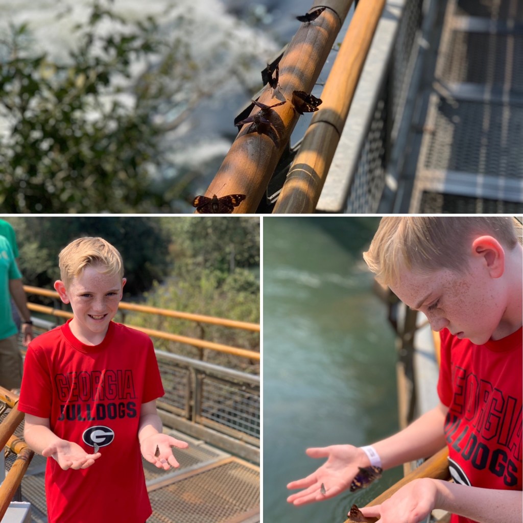 The walk is peaceful and flat with places to rest along the way, if needed. There are a ton of butterflies everywhere and they will just land on you. So cool. Tucker had seven on him at one point along the trail. I was told this area has more butterfly varieties than all of Europe.